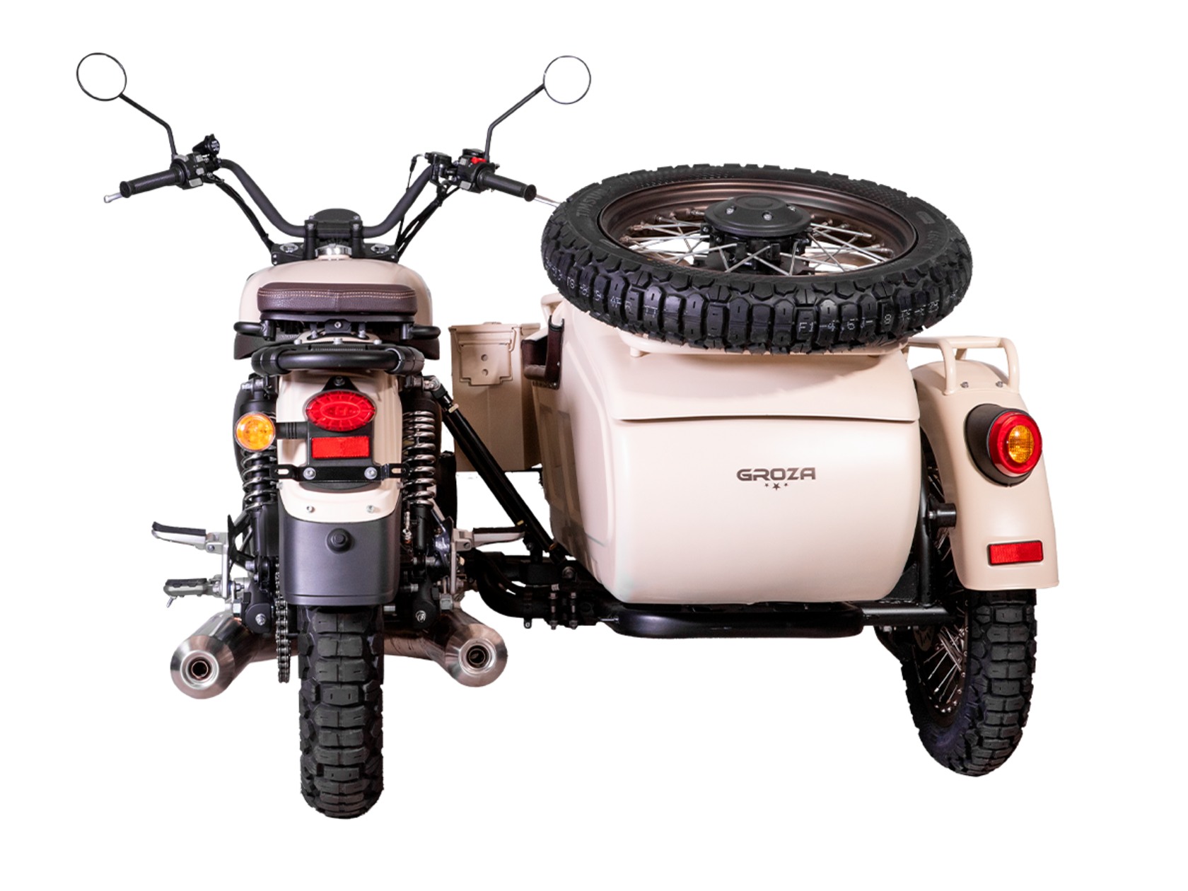 GROZA Defender 500 LC 4T EFI – легендарная модель, представляющая собой сайдкар в стиле ретро-милитари, и напоминающая культовый советский “Урал”. Байк оснащён изящными олдскульными фонарями и имеет покраску под фактуру некрашеного алюминия, как у истребителей 50-60 гг. Данная модификация является усовершенствованной моделью Defender 500 и оснащена гораздо более серьёзным мотором.Двухцилиндровый четырёхтактный двигатель объёмом 494 см3 выдаёт внушительные 54 л.с. Инжекторный впрыск топлива с блоком управления BOSCH увеличивает топливную экономичность, а также позволяет добиться высокой приёмистости и неприхотливости агрегата. Привод на ведущее колесо осуществляется цепью. Жидкостная система охлаждения не допустит перегрева мотора даже при самом агрессивном вождении.Аппарат имеет 5-ступенчатую механическую коробку передач с реверсом, что существенно облегчает маневрирование в ограниченном пространстве. На мотоцикл установлены классические спицованные колёса диаметром 18 дюймов, обутые в универсальную резину с протектором “ёлочка”, который отлично справляется с ездой по бездорожью. Передняя подвеска редкого типа – маятник с двумя амортизаторами. Сзади также установлено два пружинно-гидравлических амортизатора. Эффективное и безопасное замедление с любых скоростей обеспечивают гидравлические дисковые тормоза спереди и сзади с металлокерамическими колодками.В задней части коляски расположен вместительный багажный отсек с двумя газлифтами, а над ним закреплено запасное колесо, которое можно установить взамен любого из трёх колёс мотоцикла – незаменимая вещь для продолжительных путешествий. Также на коляске установлен передний багажник и два боковых кофра.Мотоцикл сочетает в себе отличные технические характеристики, комфорт и надёжность, что позволяет вам ощутить настоящую свободу на любой дороге.
