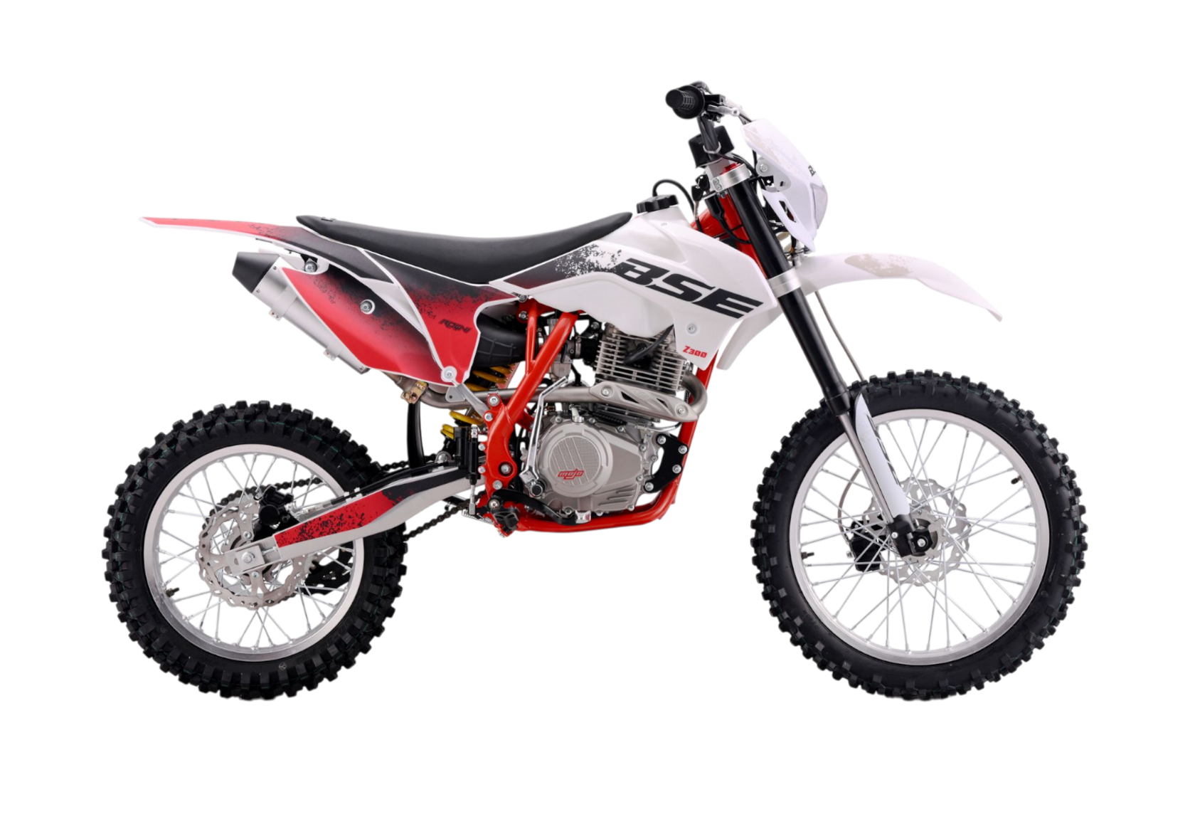 Представляем BSE Z3.00 JumpFury — настоящий кроссовый мотоцикл из легендарной Z-серии, созданный для тех, кто ищет адреналин, свободу и уверенную управляемость вне асфальта. Яркий красно-белый дизайн, агрессивный силуэт и серьёзная техническая начинка делают эту модель идеальным выбором для трейлов, мотокросса и активного отдыха в условиях бездорожья.