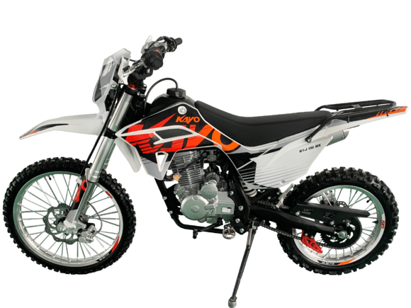 KAYO K1-J 150 MX (CB150) 19/16 (2025 г.) – мотоцикл для начала ваших внедорожных приключений.Мотоцикл оснащён 4-тактным двигателем SOHC и воздушным охлаждением. Кубатура 144,6 см³, диаметр и ход поршня – 65,5 x 49,5 мм, со степенью сжатия 9,2:1. Система подачи топлива представлена карбюратором PE24. Максимальная мощность 12 л.с. при 8500 об/мин и максимальный крутящий момент 10 Н·м при 6500 об/мин.Запуск двигателя осуществляется с помощью электростартера или кикстартера. Зажигание CDI. Ёмкость топливного бака 6 литров.Механическая 5-ступенчатая коробка передач с цепным приводом позволяет максимально эффективно передавать мощность на заднее колесо.Передняя нерегулируемая вилка 735 мм и задний нерегулируемый амортизатор 360 мм.Размерность колёс – 19 дюймов спереди и 16 дюймов сзади. Такие параметры обеспечивают отличную проходимость и устойчивость. Алюминиевые обода, ступицы и буксаторы. Гидравлические дисковые тормоза гарантируют безопасное торможение в любых ситуациях.Мотоцикл оборудован счётчиком моточасов, задней багажной платформой, пассажирскими подножками и пластиковой защитой рычагов.Размеры 1850×760×1060 мм. Высота по седлу 790 мм. Дорожный просвет в 250 мм. Колёсная база 1250 мм. Сухая масса 95 кг.KAYO K1-J 150 MX (CB150) 19/16 (2025 г.) – идеальный выбор для тех, кто ищет надёжного двухколёсного друга. Он готов к приключениям и порадует как новичков, так и опытных райдеров.