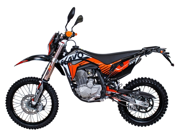 Кроссовый мотоцикл KAYO T4 300 Enduro PR 2024 модельного года – это надёжный, производительный и компактный кроссовый мотоцикл, который идеально подходит для любителей экстрима и езды по бездорожью. Модель обладает высокими характеристиками, производительным двигателем и прочной конструкцией, которая позволяет ей справляться с непростыми условиями маршрутов как на кроссовых трассах, так и в хард-эндуро.Одноцилиндровый 4-тактный двигатель воздушного охлаждения ZONGSHEN ZS175FMM-5 (PR300) с биг бором и балансирным валом имеет объём 271 см3 и выдаёт 24 л.с., что позволяет развивать большую скорость и с лёгкостью преодолевать трассы со сложным рельефом. Карбюратор NIBBI PE30 обеспечивает бесперебойную работу техники в самых жестких условиях эксплуатации, простоту и лёгкость в обслуживании, а также неприхотливость к качеству топлива. Двигатель оснащён 5-ступенчатой механической коробкой передач с классической схемой “1-N-2-3-4-5”.Усиленная рама фирменной разработки выполнена из хром-молибденового сплава, и в сочетании с регулируемой телескопической вилкой перевёрнутого типа длиной 880 мм и регулируемым моноамортизатором 450 мм с прогрессией, позволяют эффективно амортизировать удары при езде по неровностям и препятствиям на любых трассах. Оба компонента подвески произведены фирмой KKE. Мотоцикл оснащён классическими спицованными колёсами диаметром 18 дюймов сзади и 21 дюйм спереди. Высококачественная износостойкая резина с высокими грунтозацепами отлично держит дорогу на различных типах покрытия и в самых разных поворотах. Эффективное и безопасное замедление с любых скоростей обеспечивают гидравлические дисковые тормоза.Байк оснащён защитой для кистей, задним багажником и имеет систему запуска двигателя при помощи кнопки электростартера или при помощи рычага кик-стартера. Сиденье эргономичной формы покрыто антискользящим материалом. Данная модель укомплектована очень яркой линзованной светодиодной фарой, которая даёт возможность кататься в тёмное время суток.Благодаря наличию ПТС и всему необходимому комплекту светотехники, мотоцикл можно ставить на учёт в ГИБДД и ездить по дорогам общего пользования. KAYO T4 300 Enduro – это надёжный, производительный и мощный кроссовый мотоцикл с современным агрессивным дизайном для тех, кто не ищет лёгких путей.