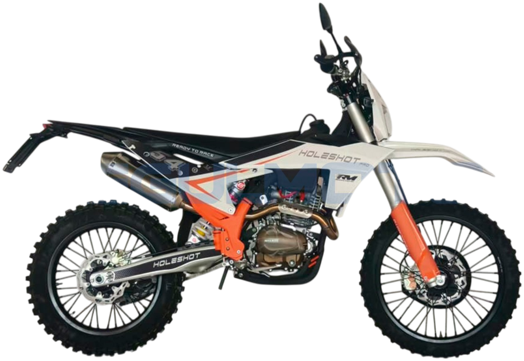 Regulmoto Holeshot PRO 300: Новая Эра Мощности и НадежностиКомпания Regulmoto с гордостью представляет долгожданную новинку — мотоцикл Holeshot PRO 300, созданный чтобы установить новые стандарты в своем классе. В его основе лежит революционный двигатель Zongshen PR300PRO и платформа, вдохновленная лучшими чертами KTM 2024 года. Это не просто обновление, это принципиально новый уровень производительности, контроля и безотказности.Конструкция и Оснащение: Готовность к Победе с Первой СекундыHoleshot PRO 300 рожден для того, чтобы доминировать. Его невероятно легкая конструкция (всего 120 кг) и продуманная геометрия обеспечивают маневренность и отзывчивость, которые почувствует даже самый требовательный райдер.Профессиональная подвеска: Передние вилки 48 мм с полной регулировкой и полнорегулируемый задний амортизатор с линейной характеристикой («без прогрессии») гарантируют безупречный контакт с любым рельефом и точнейшую обратную связь.Премиальная комплектация: Легкосплавные колеса из сверхпрочного сплава 7075, шины аналог Mitas с желтой полосой, а также полный комплект LED-оптики (фара, поворотники, стоп-сигнал) и блоки переключателей от KTM.Защита и надежность: Фирменная неломающаяся пластика Regulmoto, усиленная защита рук, защита тормозного диска и складные зеркала готовы к суровым испытаниям. Новая приборная панель завершает образ современного и технологичного мотоцикла.Сердце Чемпиона: Двигатель Zongshen PR300PROГордость инженеров завода Zongshen — абсолютно новый двигатель, пришедший на смену легендарному PR300. Это идеальный силовой агрегат для эндуро, в котором учтены и устранены все «слабые места» предшественников.Мощность и крутящий момент: Объем 297.9 см³ выдает 25 л.с. и 24 N⋅m, обеспечивая «паровозную» тягу с самых низов.Инновационные решения: Облегченная конструкция (вес мотора всего 33 кг) и смещенный центр тяжести улучшают развесовку и управляемость.Абсолютная надежность: Усиленное сцепление, усиленные шестерни и валы КПП, а также увеличенный до 1.6 л объем масла с дополнительными каналами охлаждения в головке и цилиндре полностью исключают риск перегрева и проблем с трансмиссией.Ключевые особенности: Карбюратор Nibbi Racing PWK34 для мгновенного отклика, поршень диаметром 77 мм и балансирный вал для невероятно плавной и стабильной работы.Идеальный спутник для эндуро:Holeshot PRO 300 — это не просто мотоцикл, это ваш надежный партнер для покорения самых сложных трасс. Он сочетает в себе мощь современного двигателя, непревзойденную управляемость шасси KTM и феноменальную надежность, которую предлагает бренд Regulmoto.Откройте для себя новый уровень riding-а — с Regulmoto Holeshot PRO 300.