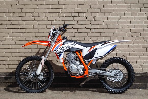 Новинка на Российском рынке - мотоцикл XMOTOS RACER 250 см.куб. 21/18 Эта модель кроссового мотоцикла скомплектована в лучших традициях полноразмерных китайских мотоциклов. В нем применены все компоненты, которые отлично зарекомендовали себя на нашем рынке и прошли испытание временем на надежность. В раме XMOTOS Racer Pro установлен 4-тактный мотор Zongshen 172 FMM с воздушным охлаждением, который можно запускать как при помощи кнопки электростартера, так и привычным рычагом кик-стартера. Показатели максимальной мощности силовой установки мотоцикла составляют около 21 лошадиных сил. При этом ключевые комплектующие и производительность компонентов остаются на достаточно высоком уровне: гибкий, устойчивый к ударам пластик, алюминиевые(7116) ободья колес, фара головного света и нержавеющий выхлопной тракт и банка глушителя приятно дополняют четкую работу двигателя и трансмиссии. Спортивный снаряд начального уровня позволит получить полноценные навыки управления техникой на треке и максимум удовольствия от мотопрогулок в хорошей компании.У нас Вы можете купить этот мотоцикл с бесплатной доставкой по РФ и гарантией до года. Также его можно приобрести в рассрочку или в кредит.