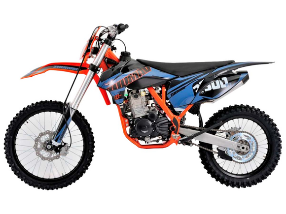 Новинка от компании ZUUMAV с хорошей комплектацией. Рама повышенной прочности из хром-молибдена, маятник алюминиевый. Двигатель с балансирным валом с хорошими техническими характеристиками ZS174MN-5 с балансировочным валом. В паре с ним работает карбюратор NIBBI RACING PWK34, данная связка позволяет достичь 28 л.с. с отличной тягой во всем диапазоне работы. У кроссового мотоцикла Zuumav FX K8 NB300 водяное охлаждение с вентилятором от компании PANASONIC. Передняя вилка полностью регулируемая KKE 54*60- 940 мм со штоком 48 мм, задний амортизатор полностью регулируемый ККЕ с алюминиевой прогрессией. Из электроники установлен: цифровой дисплей, счетчик моточасов и диодная фара с ходовыми огнями. Топливный байк 10 литров.