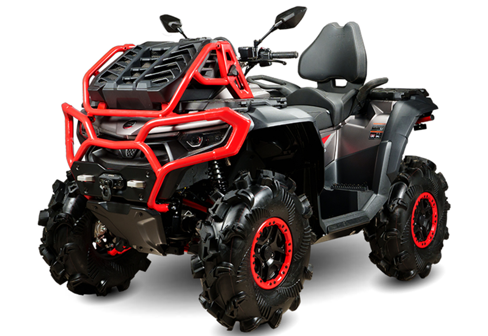 Комплектация 30-дюймовые грязевые шины CST SLUDGE HAMMER на 12” дисках с бедлоками; регулируемый вынос радиатора; шноркели; эксклюзивный вариатор CFMOTO; 8” MMI-дисплей с тачcкрином и офлайн-картами; усилитель рулевого управления (EPS) с 4 режимами работы; улучшенные амортизаторы с прогрессивными пружинами и регулировкой сжатия и отбоя; система помощи при спуске по склону (DAC)
