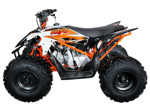 Квадрицикл KAYO AU150 – идеальный вариант для начинающих покорителей бездорожья возрастом от 14 лет, ведь он сочетает в себе тяговитый двигатель, энергоёмкую подвеску, отличную эргономику и агрессивный дизайн.4-тактный одноцилиндровый двигатель воздушного охлаждения объёмом 140 см3 (YX1P56FMJ-2) позволяет развивать максимальную мощность свыше 9 л.с. Карбюраторная система подачи топлива обеспечивает бесперебойную работу техники в самых жёстких условиях эксплуатации, простоту и лёгкость в обслуживании, а также неприхотливость к качеству топлива.Аппарат обладает автоматической 3-ступенчатой трансмиссией с реверсом, наличие которого облегчает маневрирование в ограниченных пространствах. Привод на ведущие задние колёса осуществляется цепью.Рама квадрицикла выполнена из хром-молибденового сплава, поэтому она лёгкая, прочная и обеспечивает отличную жёсткость и защиту от повреждений. Большие колеса диаметром 10 дюймов обуты в шины с глубоким протектором, и обеспечивают надёжное сцепление с грунтом и отличный контроль во время движения (параметры шин: передняя – 10'' AT23*7-10" задняя – 9'' AT22*10 -9").Квадрицикл оснащён энергоёмкой длинноходной подвеской, которая позволяет ему адаптироваться к неровностям поверхности и обеспечивает плавное и комфортное вождение на любых типах покрытий. Передние амортизаторы квадрицикла не имеют регулировок, у заднего амортизатора можно настроить преднатяг пружины. Эффективное замедление с любых скоростей обеспечивают гидравлические дисковые тормоза спереди и сзади.AU150 обладает комплектом качественной светотехники, широкими защитными крыльями, крепким багажником для перевозки небольших грузов, а также эргономичным сиденьем и удобным рулевым управлением, что обеспечивает комфортную езду. Благодаря наличию ПТС квадрицикл можно поставить на учёт, чтобы ездить по дорогам общего пользования.Квадрицикл представляет собой сплав отличных технических характеристик, комфорта и надёжности, и позволяет вам ощутить настоящую свободу на любой трассе.