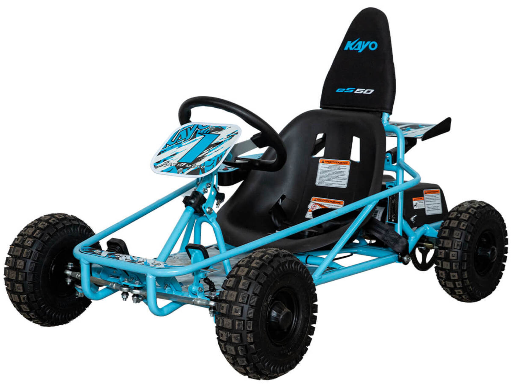 Квадроцикл KAYO еS50 – детская модель с электрическим двигателем для весёлых и безопасных заездов на природе.Оснащён щёточным двигателем постоянного тока мощностью 800 Вт с воздушным охлаждением. Обеспечивает плавную и бесшумную езду без выхлопных газов. Свинцово-кислотный аккумулятор 36V9AH обеспечивает около 70 минут непрерывной работы на одном заряде. Полная зарядка аккумулятора занимает 5-6 часов.Имеет 2 скоростных режима: 12 км/ч и 19 км/ч. Трансмиссия представлена 2-ступенчатой коробкой передач с реверсом.На квадроцикле используются колёса диаметром 3 дюйма. На задних колёсах установлены механические дисковые тормоза.Габариты 1100х700х720 мм. Высота по седлу 175 мм, клиренс 95 мм, колёсная база 850 мм. Сухой вес 43 кг.