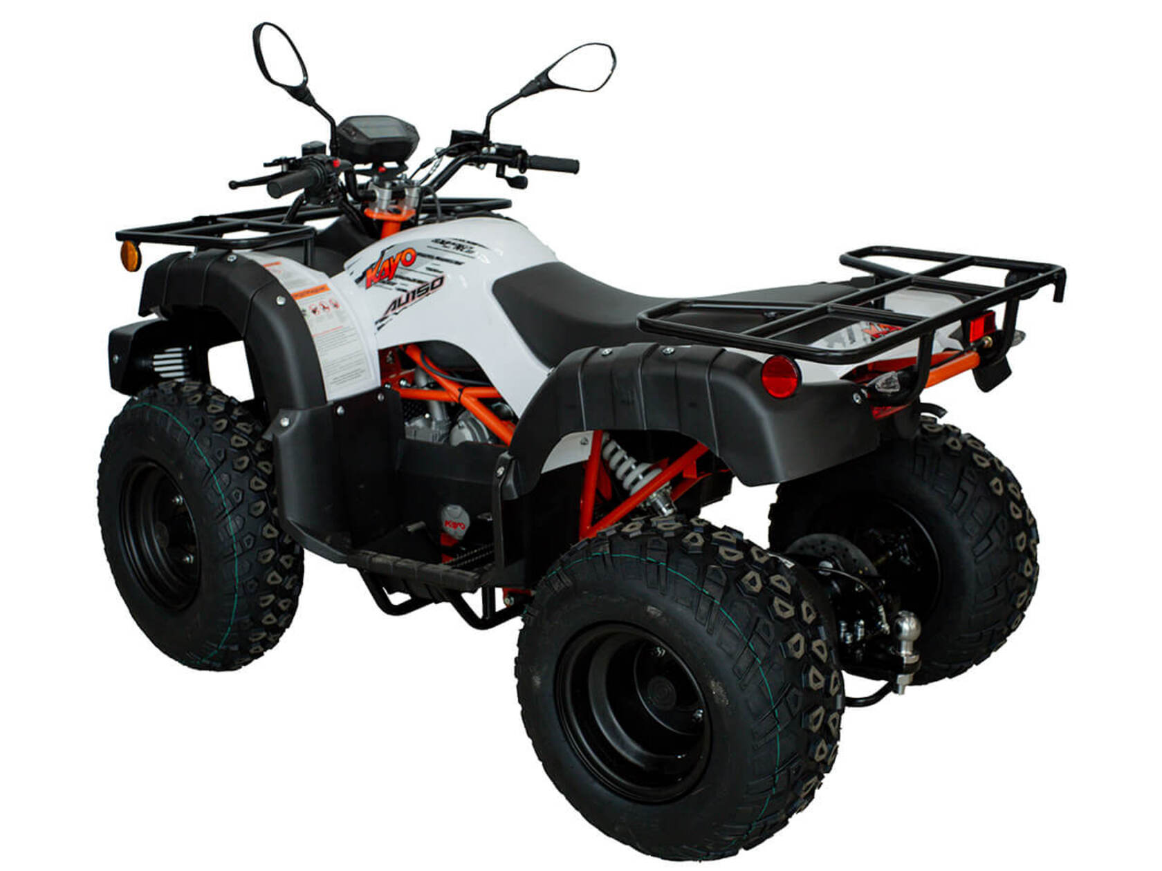 Квадрицикл KAYO AU150 – идеальный вариант для начинающих покорителей бездорожья возрастом от 14 лет, ведь он сочетает в себе тяговитый двигатель, энергоёмкую подвеску, отличную эргономику и агрессивный дизайн.4-тактный одноцилиндровый двигатель воздушного охлаждения объёмом 140 см3 (YX1P56FMJ-2) позволяет развивать максимальную мощность свыше 9 л.с. Карбюраторная система подачи топлива обеспечивает бесперебойную работу техники в самых жёстких условиях эксплуатации, простоту и лёгкость в обслуживании, а также неприхотливость к качеству топлива.Аппарат обладает автоматической 3-ступенчатой трансмиссией с реверсом, наличие которого облегчает маневрирование в ограниченных пространствах. Привод на ведущие задние колёса осуществляется цепью.Рама квадрицикла выполнена из хром-молибденового сплава, поэтому она лёгкая, прочная и обеспечивает отличную жёсткость и защиту от повреждений. Большие колеса диаметром 10 дюймов обуты в шины с глубоким протектором, и обеспечивают надёжное сцепление с грунтом и отличный контроль во время движения (параметры шин: передняя – 10'' AT23*7-10" задняя – 9'' AT22*10 -9").Квадрицикл оснащён энергоёмкой длинноходной подвеской, которая позволяет ему адаптироваться к неровностям поверхности и обеспечивает плавное и комфортное вождение на любых типах покрытий. Передние амортизаторы квадрицикла не имеют регулировок, у заднего амортизатора можно настроить преднатяг пружины. Эффективное замедление с любых скоростей обеспечивают гидравлические дисковые тормоза спереди и сзади.AU150 обладает комплектом качественной светотехники, широкими защитными крыльями, крепким багажником для перевозки небольших грузов, а также эргономичным сиденьем и удобным рулевым управлением, что обеспечивает комфортную езду. Благодаря наличию ПТС квадрицикл можно поставить на учёт, чтобы ездить по дорогам общего пользования.Квадрицикл представляет собой сплав отличных технических характеристик, комфорта и надёжности, и позволяет вам ощутить настоящую свободу на любой трассе.
