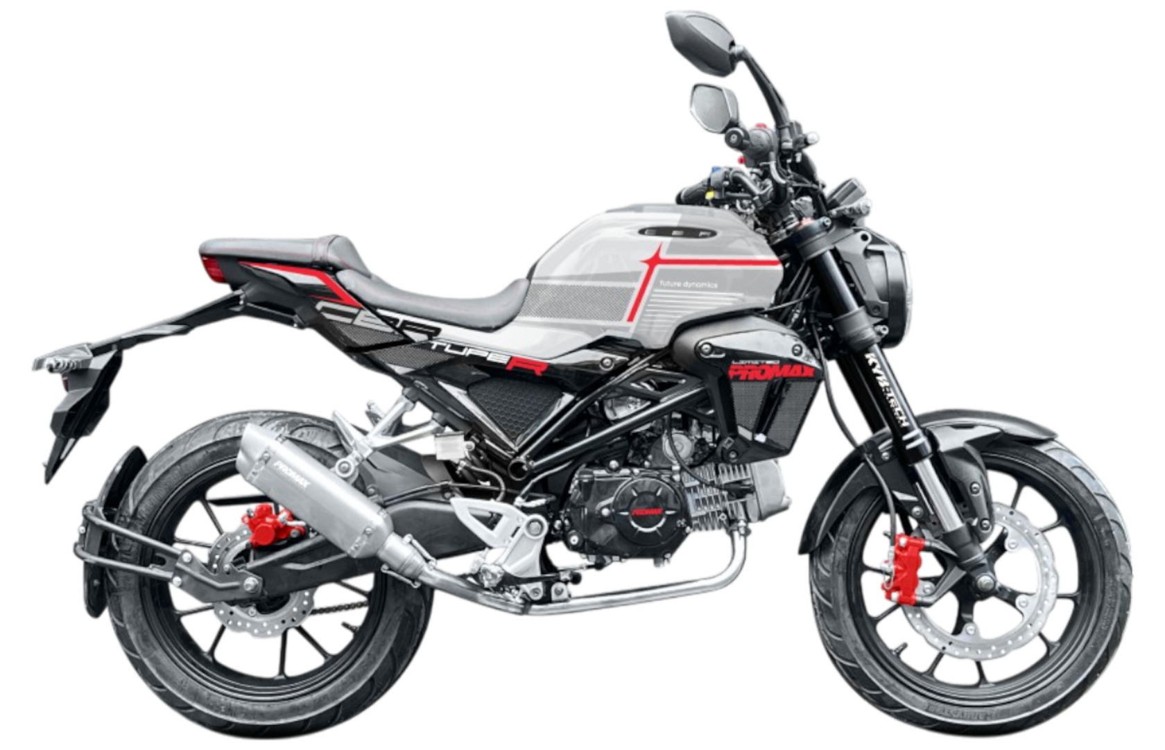 Мопед PROMAX CB130R (49)- новый дизайн в стиле городского мотоцикла. Мопед оснащен на удивление мощным двигателем, и может соперничать с многими мало-кубатурными мотоциклами!Модель PROMAX CB130R (49) оснащена 4-тактным двигателем, разработанным на базе двигателя HONDA 127, с увеличенным объемом ЦПГ и мощностью до 12 л.с. Керамическое покрытие цилиндро-поршневой группы делает данный силовой агрегат самым долговечным и надежным, что выгодно отличает его от конкурентов. Мопед не требует регистрации и достаточно иметь только категорию водительских прав мМеханическая 4-ступенчатая трансмиссия NORD обеспечивает плавные переключения и комфорт при езде как по городу, так и по пересеченной местности. Модель оснащена лучшими комплектующими, включая подвеску от ITALIN V-ONE, карбюратор KEIHIN JAPAN, систему зажигания CDI ZONGSHEN, сцепление на базе HINSO и ударостойкий пластик RXF PLAST PRO.Рама мотоцикла PROMAX CB130R (49) сделана на базе новейше модели мопеды HONDA – самая надежнейшая рама c увеличенной допустимой нагрузкой в 250кг! Рама выполнена из CR-MO (хромолибден) стали, покрыта раптором! Максимальный запас прочности и защиты от коррозии! Держит раму на себе подвеска перевернутого типа спереди и моноамортизатор сзади от KKE, с возможностью тончайшей настройки для ваших задач и целей! В таком сочетании люфты подвески отсутствуют – при резком страгивании с места мотоцикл не рыщет, стоит ровно, уверенно!Головная фара с пятью светодиодными линзами светит очень ярко!Приборная панель LCD панель отображает всю текущую информацию о состоянии мотоцикла. Вся электроника имеет влагозащищенные разъемы, которые абсолютно исключают попадание воды и образование коррозии! Питает электронику аккумулятор, Li-ion, общим весом 200 грамм!!!Влагозащищенные кнопки старт/стоп на руле.