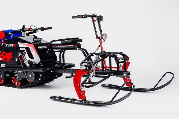 • 12. Мотобуксировщики IKUDZO имеют идеальную балансировку и нагрузку на гусеницу. Двигатель размещён так, что даже без дополнительного груза на мотособаке давление на снег будет равномерно, что значительно повышает проходимость!