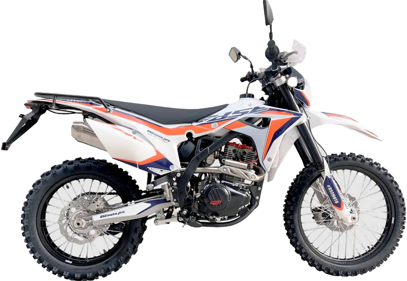 BSE Z6 Y - идеальный мотоцикл для долгих эндуро путешествий! Благодаря наличию дополнительного топливного бака на 4 литра, удобного сиденья и пассажирских подножек. Имеется возможность закрепить поклажу на задний багажник.BSE Z6 Y комплектуется всем необходимым для передвижения по асфальту: возможность постановки на учет, электростартер, яркая LED фара головного света и задний стоп сигнал, наличие поворотников и зеркал заднего вида, широкий спортивный алюминиевый руль. Благодаря ЖК приборной панели вы всегда будете знать о всех главных параметрах мотоцикла. Мощная гидравлическая тормозная система HSК Racing остановит байк в любых условиях.Z6 Y - идеально сбалансированный, устойчивый, мощный эндуро мотоцикл на прочнейшей усиленной стальной раме. Сердце Z6 Y– мощный, эластичный и надежный 250 кубовый Zongshen ZS 172 FMM мощностью 21 лс. Система подачи топлива – проверенный карбюратор Nibbi 28.Крепкий, надёжный и неприхотливый BSE Z6 Y обладает всеми качествами настоящего эндуро. Подойдёт, как и для среднего уровня катания, так и для продвинутого райдера. Z6 Y оснащается регулируемой подвеской MOJO Racing c большими ходами, рычагам задней прогрессии и вилкой “перевертышем”. Алюминиевые колёсные диски с буксаторами, внедорожная резина, усиленная цепь, датчик моточасов, защита рук – ваши возможности на бездорожье безграничны!Наслаждайтесь преимуществами BSE Z6 Y на любых покрытиях.