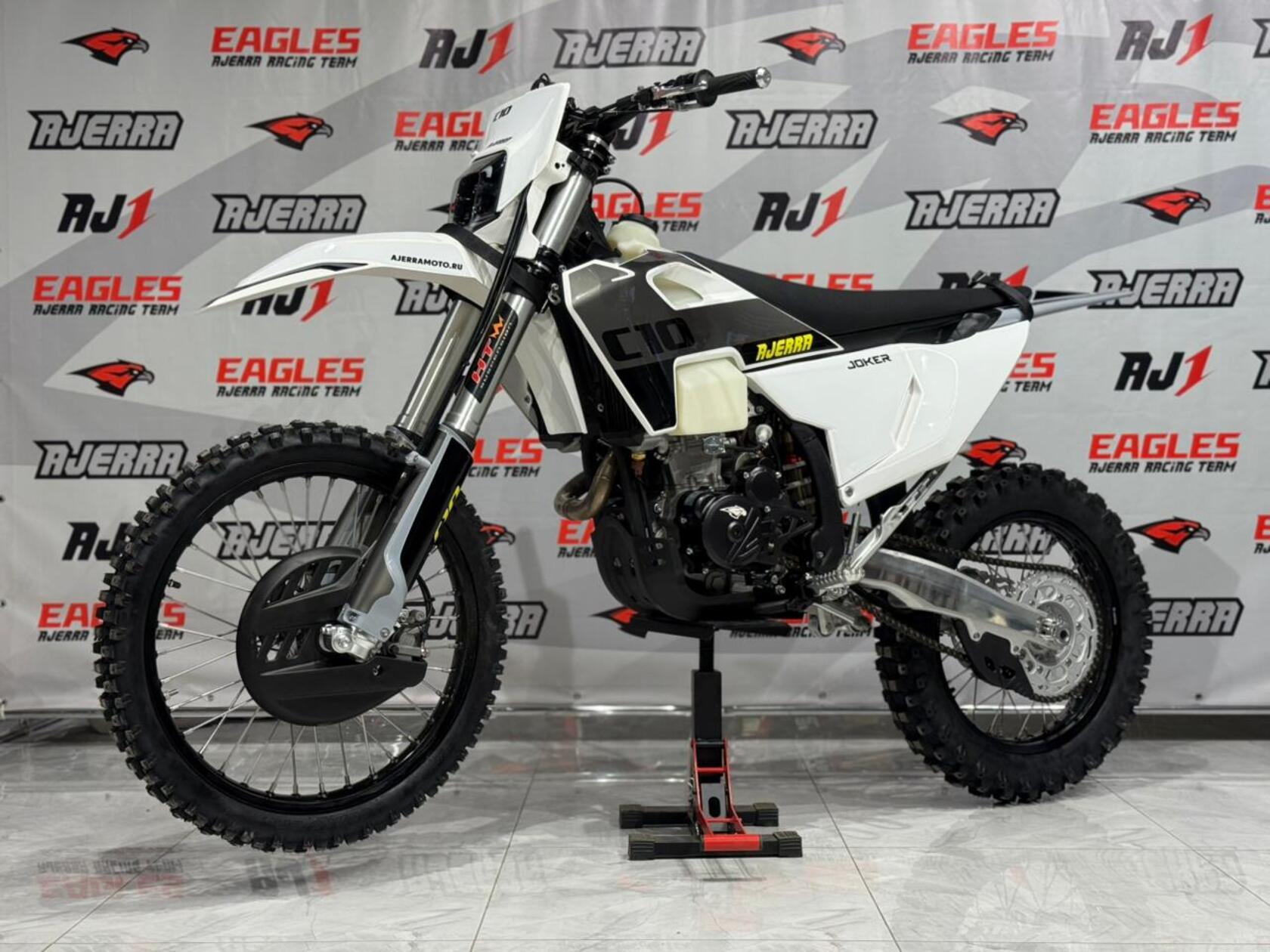 Мотоцикл AJERRA JOKER C10 YBS 300 — это воплощение современного эндуро с безупречным балансом мощности, управляемости и технологичности. Он создан на базе проверенного двигателя Loncin YBS300 176FM с водяным охлаждением, который обеспечивает стабильную работу, отличную тягу и плавную реакцию на газ. Надёжный мотор и карбюратор Nibbi Racing PWK 34 Black формируют сбалансированную связку, обеспечивающую уверенное ускорение и высокую производительность в любых условиях. Конструкция мотоцикла построена на прочной и лёгкой раме К10 завода AJ1 — это точная копия KTM 2024 года, что гарантирует устойчивость и отличную управляемость даже на сложных участках трассы. Внешне модель выполнена в стиле Husqvarna 2024 года: динамичный пластик придаёт мотоциклу агрессивный спортивный облик, а продуманные формы обеспечивают удобство посадки и контроль над техникой. Подвеска у JOKER C10 на высшем уровне: спереди установлена вилка HTW SCC длиной 930 мм с одним картриджем, а сзади — амортизатор HTW 2450 с прогрессией, обеспечивающий мягкость и точную работу при высоких нагрузках. Алюминиевый маятник, фрезерованные траверсы AJ1 2024 и усиленные обода UNISON 7116 создают прочную, но лёгкую конструкцию, идеально подходящую для скоростного эндуро. Мотоцикл оснащён тормозной системой AJ1 с дисковыми тормозами спереди и сзади, обеспечивающими надёжное торможение в любых условиях. Усиленный руль AL7075, фрезерованные ступицы и алюминиевая ведомая звезда AL7075 51 делают управление максимально точным и уверенным. Выхлопная система AJ1 2025 обеспечивает не только приятный звук, но и стабильную работу двигателя на высоких оборотах. Электрооборудование продумано до мелочей: мощный свет 2 EYE LED Generation 4 (50W), литиевый аккумулятор Skyrich, приборная панель в стиле KTM 2024, счётчик моточасов, защита рамы и мотора, передние и задние стропы, а также анатомическое антискользящее сиденье AntiSkid. Каждая деталь создана для удобства и надёжности. Покрышки AJ1 размером 80/100-21 спереди и 120/90-18 сзади обеспечивают уверенное сцепление с дорогой, а цепь KMC 520 Pro выдерживает высокие нагрузки при активной езде. Все болты формата TorX повышают надёжность и упрощают обслуживание. С высотой по седлу 94 см, мотоцикл AJERRA JOKER C10 YBS 300 ориентирован на опытных райдеров, ищущих надёжную и технологичную технику для эндуро и кросса. Эта модель сочетает в себе премиальные комплектующие, высокое качество сборки и выдающиеся характеристики, делая езду комфортной, управляемой и по-настоящему захватывающей..