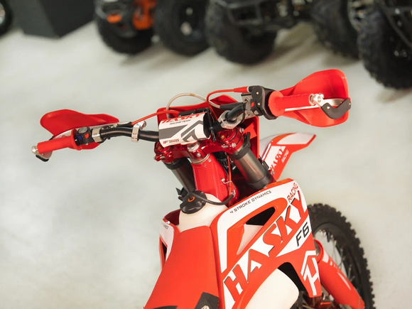 Уверенный мотоцикл на каждый день. Обновленная версия мотоцикла Hasky F6 Racing 2023 модельного года. Абсолютно новая, облегченная модернизированная рама, легче аналогичных на 2кг. Изменено расположение подножек и угол расположения рулевой колонки.Четырехтактный двигатель ZS PR300 SOHC-AIR воздушного охлаждения, с балансирным валом питается от карбюратора Nibbi PWK 34 Race, имеет 6 передач, электростертер и выдает 25 лошадиных сил мощности!Траверсы CNC AJ1 новой конструкции двойного охвата вилки, для равномерного распределения нагрузки на передние амортизаторы компании HTW. А усиленный руль из сплава 7075 в паре с армированной защитой рук имеет возможность быть отрегулированным на траверсах с положением по горизонтали для настройки самой комфортной посадки. А чтобы закрыть вопрос комфорта окончательно, на мотоцикле установлены пеги (подножки) AJ1, которые имеют широкую форму, смещение назад и исключает налипание на них грязи.Усиленные обода из алюминия 7050, японские ступичные подшипники NSK. Заднее колесо 18”, покрышка Soft 120\90-18. Переднее колесо 21”, покрышка Soft зеленая полоса 90\90-21. В каждом из колес внутри толстая камера со стенкой 3мм и фиксатор покрышки AJ1. Выхлопная система тоже подверглась изменениям. Теперь труба от двигателя идет от узкого диаметра к широкому, что дает улучшенные характеристики для выбросов выхлопных газов, а банка глушителя с DB Killer не имеет аналогов среди конкурентов по своему весу. Так же, благодаря специальной форме Power Bomb, реплика CRF, снижена теплонагрузка на выпускной коллектор, что снижает риск получения травмы. Тормозные системы идут бренда AJ1. Совершенно новая технология улучшающая свойства торможения, реплика Magura. Тормозные диски AJ1 из твердосплавной стали, толще аналогов на 2мм, что позволяет забыть о гнутых о камни дисках, ведь они стали сильно прочнее. Колодки выполнены из синтетических материалов, которые имеют меньшую теплопроводность и не нагревают тормозную жидкость. Даже тормозная жидкость не обделена инновациями. В тормозных системах залита тормозная жидкость новой формулы AJ1, тесты которой показали техническое превосходство над DOT 5.1 в несколько раз. В этом мотоцикле собраны только лучшие комплектующие поднебесной , крепежные соединения типа TORKs, ручка газа от компании Nibbi, трос сцепления и газа Nibbi, воздушный фильтр с увеличенной площадью из негорючего материала (препятствует возгоранию), грипсы Lock-on. Сидение на мотоцикле Hasky F6 выполненного из материала по технологии Antiskid, позволяющего цепляться за байк в самых неумолимых моментах. Вся проводка в мотоцикле полностью влагозащищенная, имеет автомобильный предохранитель, а кнопки старт\стоп двигателя выполнены по технологии влагозащиты КТМ. Светодиодная фара с 5 мощными линзами, которые формируют яркий пучек света и позволяют ездить даже в самых неблагоприятных условиях.