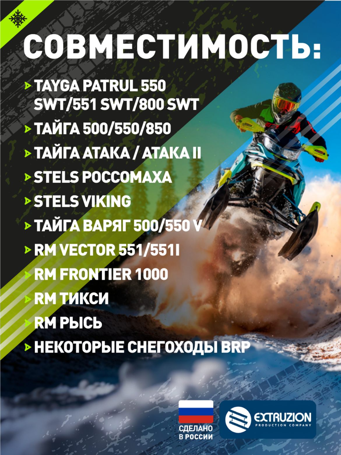 • Универсальность применения для различных моделей снегоходов