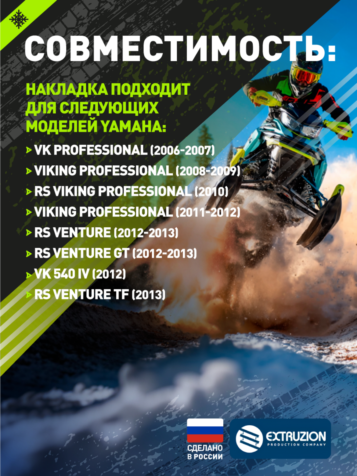 Повышение проходимости и устойчивости. Увеличивает проходимость техники по рыхлому снегу и глубоким сугробам Снижает валкость снегохода и улучшает курсовую устойчивость Увеличивает площадь соприкосновения с поверхностью, предотвращая проваливание