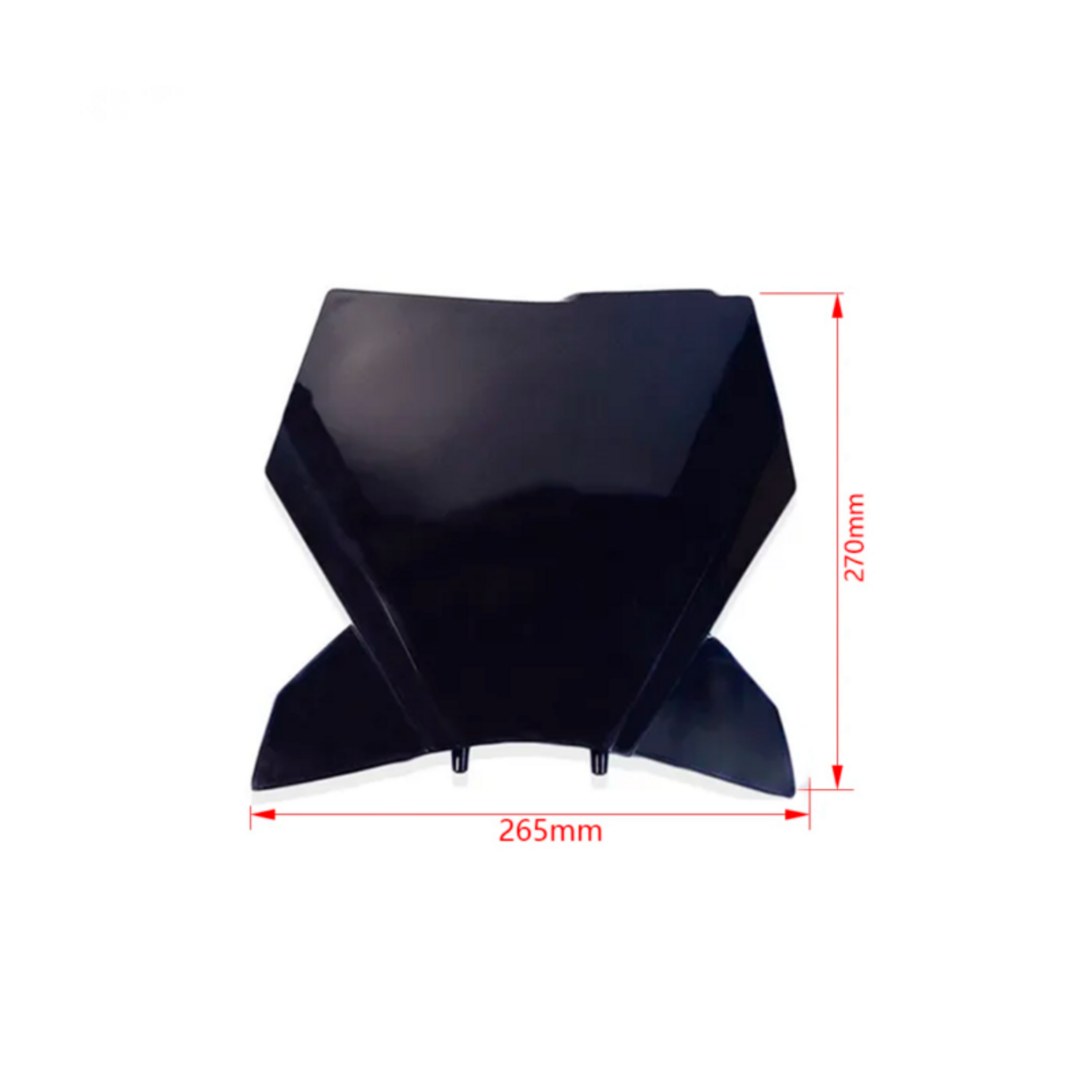 • Передний номерной щиток для современных эндуро и кроссовых мотоциклов с пластиком типа KTM 2024 года. Оригинальная геометрия и универсальный чёрный цвет для стильного внешнего вида и надёжности. Выполнен из прочного УФ-стойкого ABS-пластика.