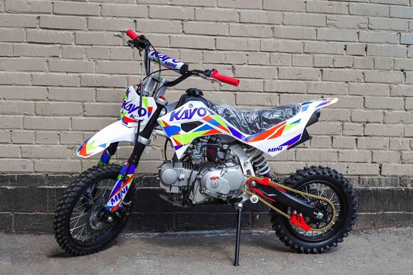 Питбайк KAYO Basic K125EA KRZ – идеальный снаряд для наработки первого опыта в мотокроссе и эндуро, который можно использовать на лёгких кроссовых трассах и дорогах с различным покрытием. Удобный, простой и надёжный мотоцикл, который полностью оправдывает свою цену.Одноцилиндровый 4-тактный двигатель воздушного охлаждения объёмом 125 см3, выдаёт 9 л.с. Карбюратор NIBBI PE19 обеспечивает бесперебойную работу техники в самых жёстких условиях эксплуатации, простоту и лёгкость в обслуживании, а также неприхотливость к качеству топлива. Питбайк оснащён полуавтоматической 4-ступенчатой коробкой передач с формулой “N-1-2-3-4”. Сцепление тут выжимать не нужно – переключение происходит под сброс газа, что позволит начинающим райдерам меньше отвлекаться и больше сосредоточиться на управлении питбайком.Мотоцикл имеет вес всего 73 кг. Усиленная рама из хром-молибденового сплава и подвеска позволяют эффективно амортизировать удары при езде по неровностям и препятствиям на трассе. Передняя подвеска — телескопическая вилка перевёрнутого типа длиной 770 мм, задняя — моноамортизатор длиной 360 мм. Оба компонента подвески являются нерегулируемыми. Рама и пластик являются собственной разработкой производителя. Мотоцикл оснащён классическими стальными спицованными колёсами диаметром 17 дюймов спереди и 14 дюймов сзади. Эффективное и безопасное замедление с любых скоростей обеспечивают гидравлические дисковые тормоза.Высококачественная износостойкая резина с развитым протектором отлично держит дорогу на различных типах покрытия. Байк оснащён как системой запуска двигателя при помощи кнопки электростартера, так и рычагом кик-стартера. Питбайк имеет вместительный топливный бак на 5,5 л, что гораздо больше, нежели у других байков этого класса. Питбайк оснащён стальной защитой картера и яркой линзованной фарой.Если вы ищете послушный, компактный, шустрый и красивый питбайк, считайте, что вы его нашли. Это один из лучших мотоциклов для обучения и первых шагов в эндуро и мотокроссе. Он отлично подойдёт как для гонок на трассе, так и для покатушек по пересечённой местности.