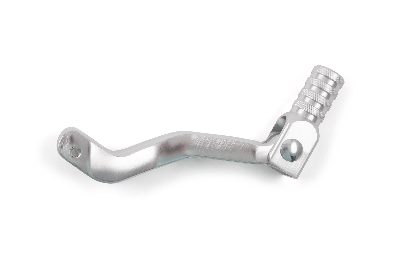 • Алюминиевый складной рычаг переключения передач серебристого цвета для эндуро мотоциклов с двигателями 165-172 FMM и 174 CBS-NB. Изготовлен из литого алюминия со складным кончиком, который предотвращает поломку рычага при падении или боковом ударе. Универсальная конструкция с вылетом, не гнет вал при падениях. Установка без втулки. Совместим с двигателями 165FMM, ZS170MM-2, ZS172-3A, ZS172-5A, ZS174MN-3.