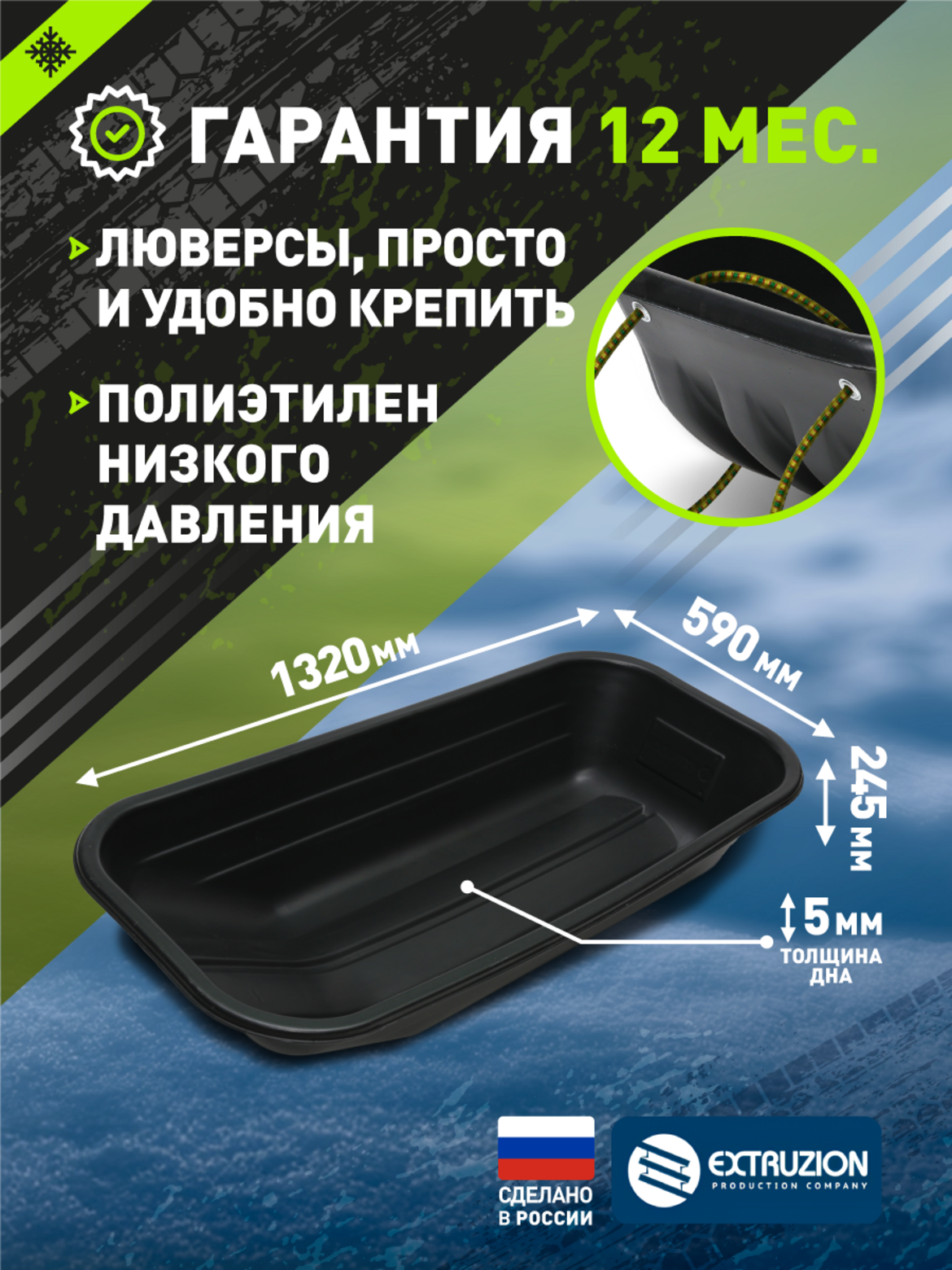 • • Материал: сверхпрочный ПНД с УФ-защитой