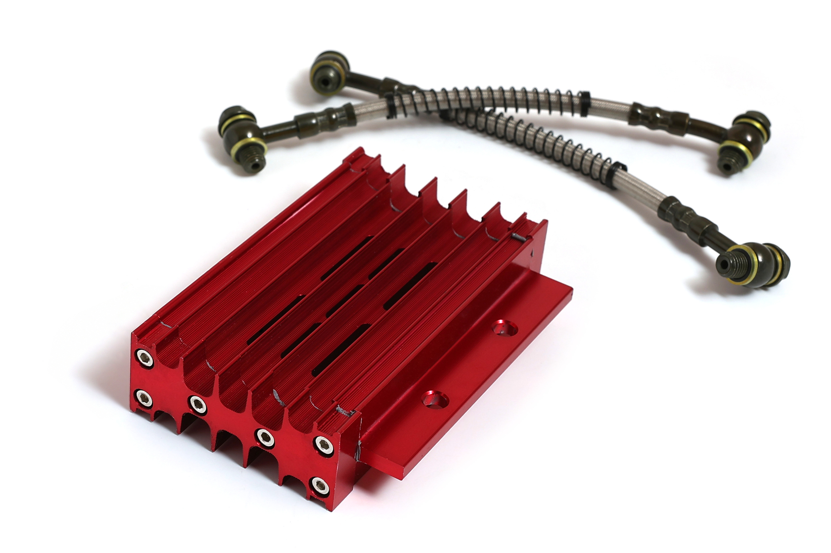 • Эффективный радиатор масляного охлаждения с корпусом из алюминия, выполненный по технологии CNC, ярко-красного цвета. Предназначен для установки на 90% питбайков и мопедов с объёмом двигателя от 125 до 190 см³. Обеспечивает стабильное охлаждение масла, снижая риск перегрева двигателя и увеличивая его срок службы даже при интенсивной эксплуатации.
