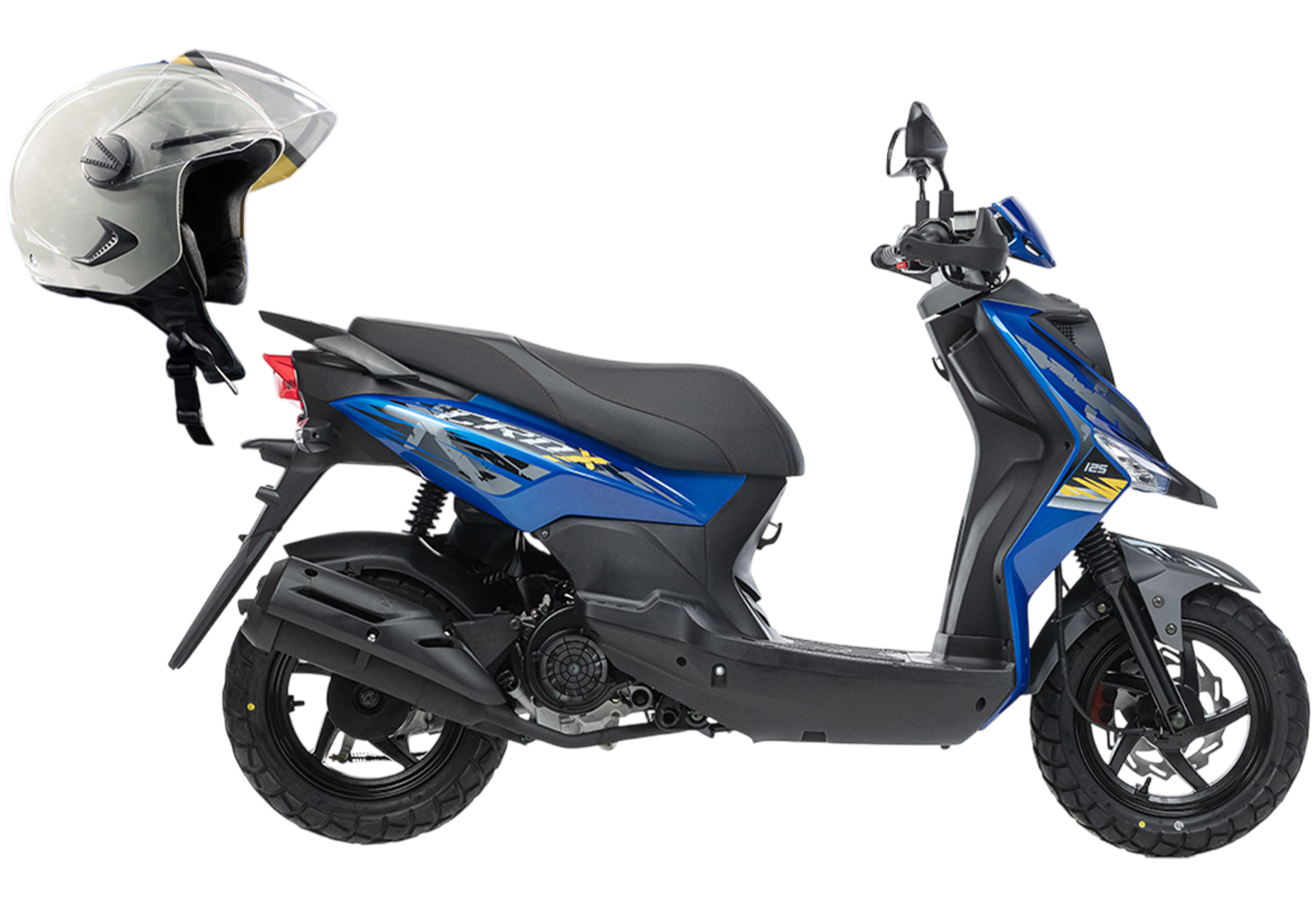 Главная ... Скутеры SYM Скутер SYM CROX 125 Ярко Синий/ Матовый Темно-Серый + мотошлем SYM серый