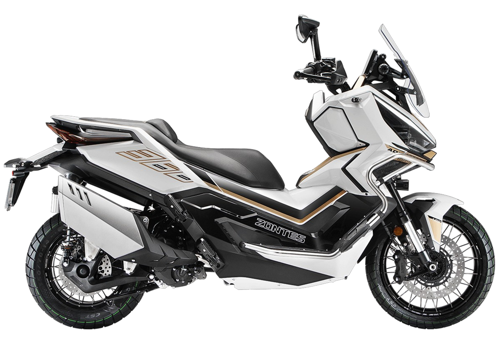 Скутер ZONTES ZT368-G – максискутер двойного назначения, готовый пронестись по улицам города за его пределы и отправиться по грунтовым тропам прокладывать свой маршрут туда, куда вам потребуется. Регулируемая подвеска с перевёрнутой телескопической вилкой спереди обеспечит отличную управляемость и устойчивость в любых условиях.Силовая установка представлена одноцилиндровым 4-тактным двигателем. Двигатель имеет объём 368 см³ и обеспечивает мощность в 38,8 л.с. Оснащён инжектором BOSCH, системой жидкостного охлаждения и вариатором. Запуск двигателя осуществляется с помощью бесключевого доступа.Ёмкость топливного бака 17,5 литра.Колёса имеют диаметр 17 дюймов спереди и 14 дюймов сзади. Для подвески спереди используется телескопическая вилка перевёрнутого типа, а сзади установлены 2 гидравлических амортизатора. Гидравлические дисковые тормоза произведены компанией J.JUAN, входящей в холдинг BREMBO. Мотоцикл также оснащён 2-канальной ABS-системой, противобуксовочной системой TCS System и датчиками давления в шинах.ZT350-G оборудован яркой LED-фарой, мультимедийной приборной панелью с TFT-дисплеем, имеются 2 USB-порта.Габариты скутера 2230х925х1290 мм. Колёсная база 1560 мм. Высота по седлу 795 мм. Вес 198 кг.