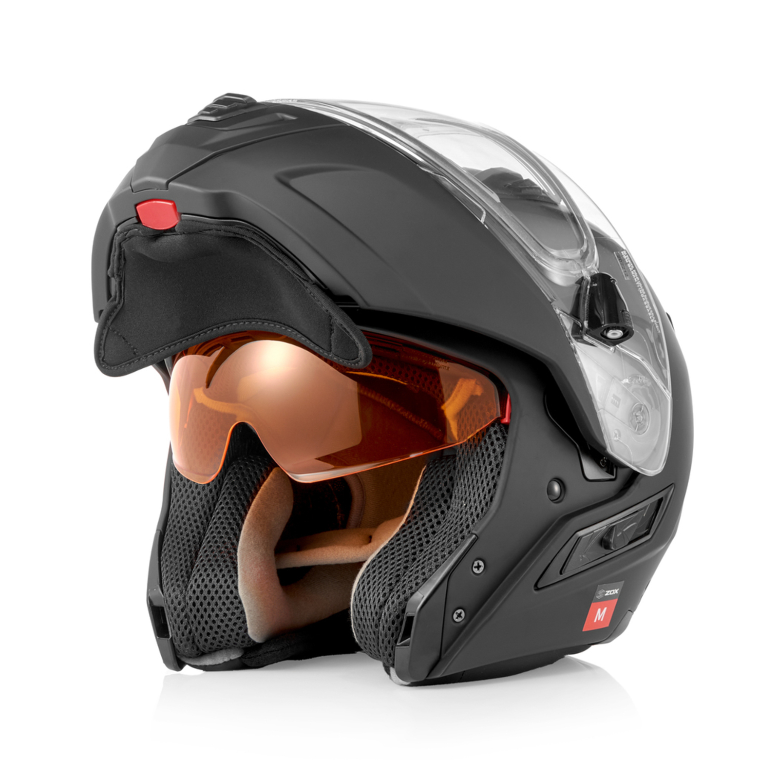 Шлем снегоходный ZOX Condor, стекло с электроподогревом, глянецМатериал оболочки:термопластик ABSПодкладка шлема:съемнаяЗастежка шлема:бугельная застежкаВес шлема (гр.):1 600Покрытие:глянецСолцезащитная шторка:ДаСтекло:стекло с электроподогревомZOX Condor - это легкий снегоходный шлем модуляр со стеклом с электроподогревом, интегрированным солнцезащитным визором,улучшенной видимостью и съемной моющейся подкладкойЭлектроподогрев визора предотвращает запотевание и обледенение, что улучшает обзор и увеличивает длительность поездкиа откидная фронтальная часть создает дополнительный комфорт при эксплуатации.• Корпус шлема изготовлен из термопластика и выполнен в двух размерах, как и внутренняя защита из EPS, для более четкой и комфортной посадки• Большой визор с широким обзором и электроподогревом, эффективно предотвращаюим запотевание• Встроенный солнцезащитный визор SVS оранжевого цвета (Solar Visor System), усиливает контрастность и четкость.Даже в пасмурную заснеженную погоду, вы будете четко различать перед собой ямы, кочки и другие особенности ландшафта.Защищает глаза от яркого зимнего белого света, отражанного от снега.• Неопреновая "зимняя" подбородочная шторка и широкий отсекатель дыхания, плотно прилегает к лицу и убирает лишний теплый воздух от визора. Уменьшают ветер и шум• Аэродинамическая форма шлема, снижающая внешний шум• Развитая система вентиляции в зоне лба, подбородка и затылка• В конструкции челюсти применено резиновое уплотнение, что предотвращает попадание наружного воздуха, а так же снижает уровень шума• Удобная быстросъемная, моющаяся подкладка• Ремешок с быстросъемный бугельной застежкой• Во внутренней части шлема предусмотрены места для установки наушников гарнитуры Bluetooth• Шлем соответствует стандартам DOT FMVSS-218 и ECE 22.05• Вес: 1600 (+-50)грРекомендуем для катание на снегоходе и квадроцикле.Сезон осень, зима, весна.В комплекте:Шнур для электростеклаНеопреновая подбородочная шторкаОтсекатель дыхания