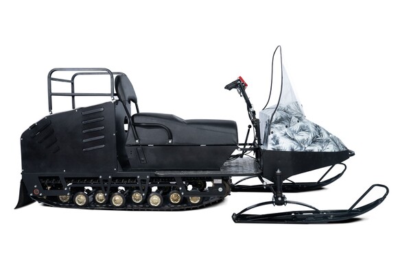 Модель Бурлак Егерь Центро-M собран на базе удлиненной гусеницы. Ширина 500 мм. Подвеска: катковая. Оснащен 4х тактным двигателем Lifan / Loncin мощностью 18 л.с.На миниснегоход установлено двухместное сиденье. Есть два больших багажных отделения под капотом и сиденьем.В качестве дополнительной опции можно установить, подогрев ручек руля и курка газа.Модель доступна в двух вариантах покраски капота: Белый и Белый Камуфляж.