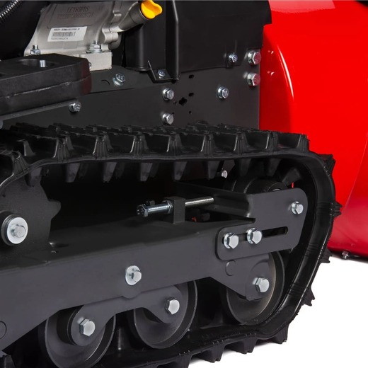 - Гусеничный ход. Использование гусениц прямоугольной формы с системой «антиналедь» и самоочисткой увеличивает пятно контакта и обеспечивает непревзойденную проходимость на любых поверхностях: скользких, заснеженных, даже по глубокому рыхлому снегу. Это идеальное решение для работы на неровных рельефах и склонах.