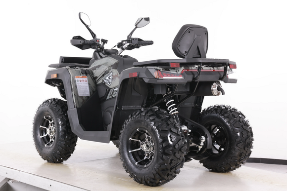 • Мощь и надежность: Сердцем квадроцикла является 200-кубовый 4-тактный двигатель с воздушным охлаждением, выдающий 16.9 л.с. Этой мощности с лихвой хватит для перевозки грузов, буксировки и преодоления любых препятствий.