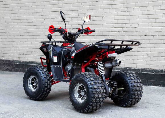 Стильная современная новинка 2019 года от компании WELS - квадроцикл для детей и подростков WELS THUNDER EVO X 125 предназначен для детей и подростков и обладает всеми необходимыми характеристиками, чтобы ребенок чувствовал себя на рулем настоящего квадроцикла, а его родители при этом были бы спокойны за безопасность юного пилота. ЛЮКСовая версия отличается от обычной наличием зеркал, дополнительной светодиодной оптики, спортивным глушителем, также квадроцикл укомплектован песочной резиной.125 кубового мотора вполне хватает для непоседливых гонщиков. Если же Вам кажется, что этого много - воспользуйтесь ограничителем скорости.Дисковые тормоза спереди и сзади обеспечат своевременную остановку перед препятствием.Защита рук в комплектации оградит ребенка от ударов веток и других помех.Песочная резина. Большие колеса 19,7-8, зад.: 18,9.5-8.Наличие укрепленных багажников спереди и сзади позволит установить на квадроцикл кофр и выезжать на природу с необходимым набором вещей и инструментов.Светодиодные фары для передвижения в темное время суток.Моточасы, светодиодные фары, звуковой сигнал, колпаки - все включено в комплектацию.Доступен в расцветках: черно-красный, бело-красный, живописно-красный, зеленый камуфляж
