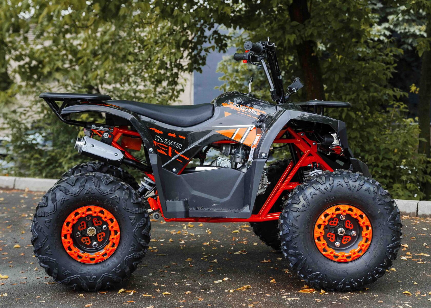 Детский бензиновый квадроцикл YACOTA FUSION 125 станет отличным первым серьезным транспортным средством для ребенка от 7-ми лет.Дисковые передние и задние тормоза! Двойная подножка. Пластиковые багажники с металлическим каркасом. Яркие габаритные огни над фарой. Защита рук.На квадроцикле установлен вариатор (автоматическая коробка передач), что сделает управление квадроциклом максимально простым.Ручной тормоз сделает управление максимально понятным и информативным.Максимальная нагрузка для детского квадроцикла - до 100 кг.Наиболее комфортно на этой модели квадроцикла будет ребенку с ростом до 140см.