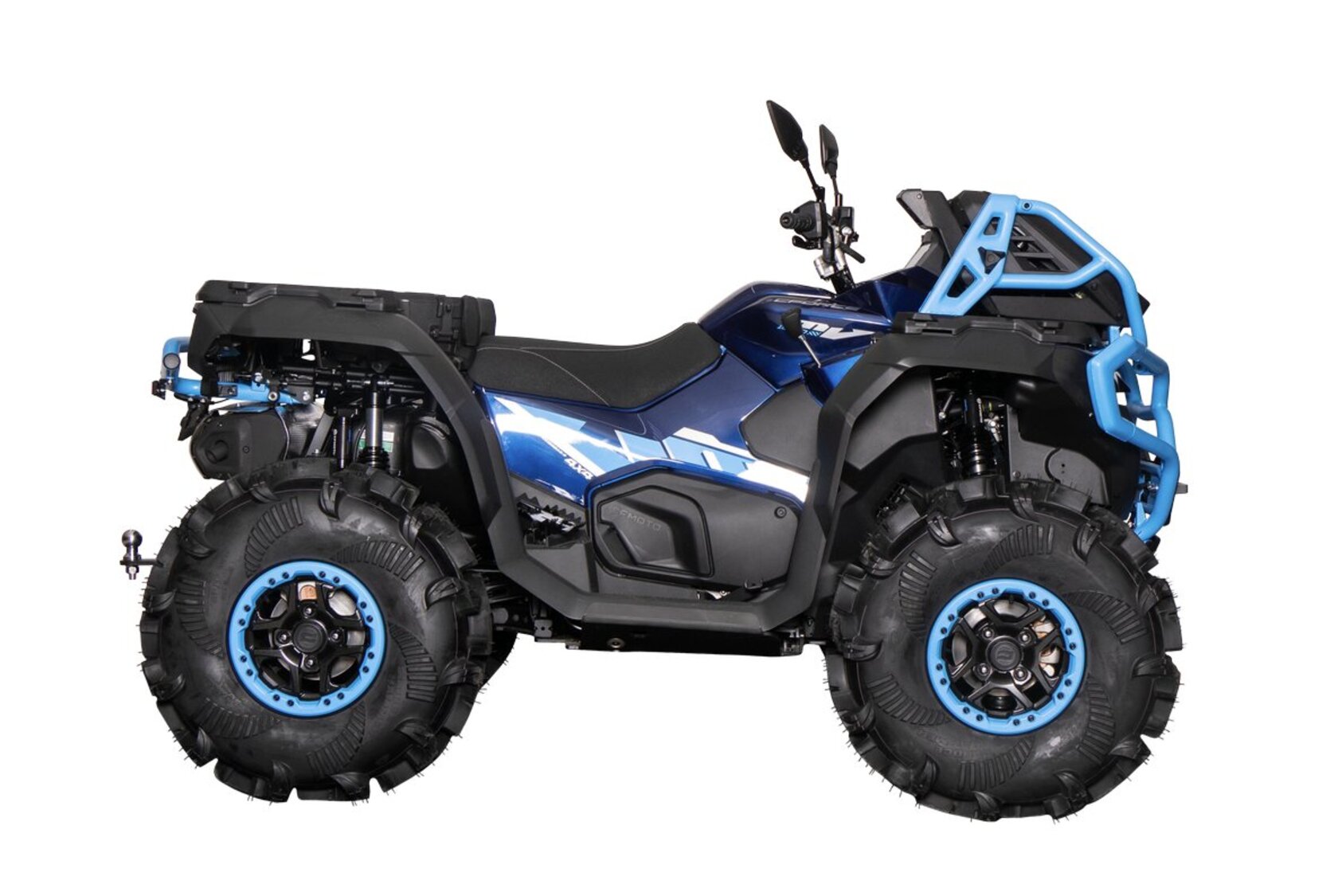 Разработанный для экстремалов и абсолютного бездорожья, новый CFORCE 1000 MV станет вашим безупречным спутником там, где не ступали нога обычного человека и колесо другого квадроцикла! Эта модель создана, чтобы выдержать самые сложные маршруты, где бы они ни пролегали.CFORCE 1000 MV идеален в глубокой грязи и глине, лесовозных колеях и на раскисших грунтовках, он дарит вам свободу передвижения вне зависимости от типа поверхности. Для него нет преград и авторитетов, это превосходный выбор для тех, кто уверен в себе и своих способностях райдера!Новинка создана для тех, кто не боится вызовов и готов покорять самые сложные маршруты. Благодаря увеличенному дорожному просвету в 334 мм и 30-дюймовым грязевым шинам CST SLUDGE HAMMER вы сможете уверенно двигаться по труднопроходимым участкам, сохраняя управляемость и сцепление колес с любой поверхностью. Поднятая на 200 мм лебёдка и специально разработанные подножки обеспечивают улучшенную проходимость, а прочные защитные элементы сохранят технику от повреждений во время поездок по сложным рельефам и обеспечат необходимую безопасность райдеру.В сердце квадроцикла расположен высокоэффективный двигатель третьего поколения мощностью 90 л. с., который гарантирует высокую производительность и надежность. Оптимизированная трансмиссия и усовершенствованный вариатор, индикатор температуры вариатора, регулируемый угол радиатора и интегрированный воздухозаборник — все эти передовые технологии позволяют CFORCE 1000 MV оставаться эффективным даже в условиях интенсивной эксплуатации на сложном бездорожье.Присоединяйтесь к тем, кто ценит адреналин и готов к новым открытиям и свершениям!На квадроцикле допускается выезд на дороги общего пользования. Дополнительные преимущества:– регулируемый вынос радиатора;шноркели для преодоления глубоких водных преград;