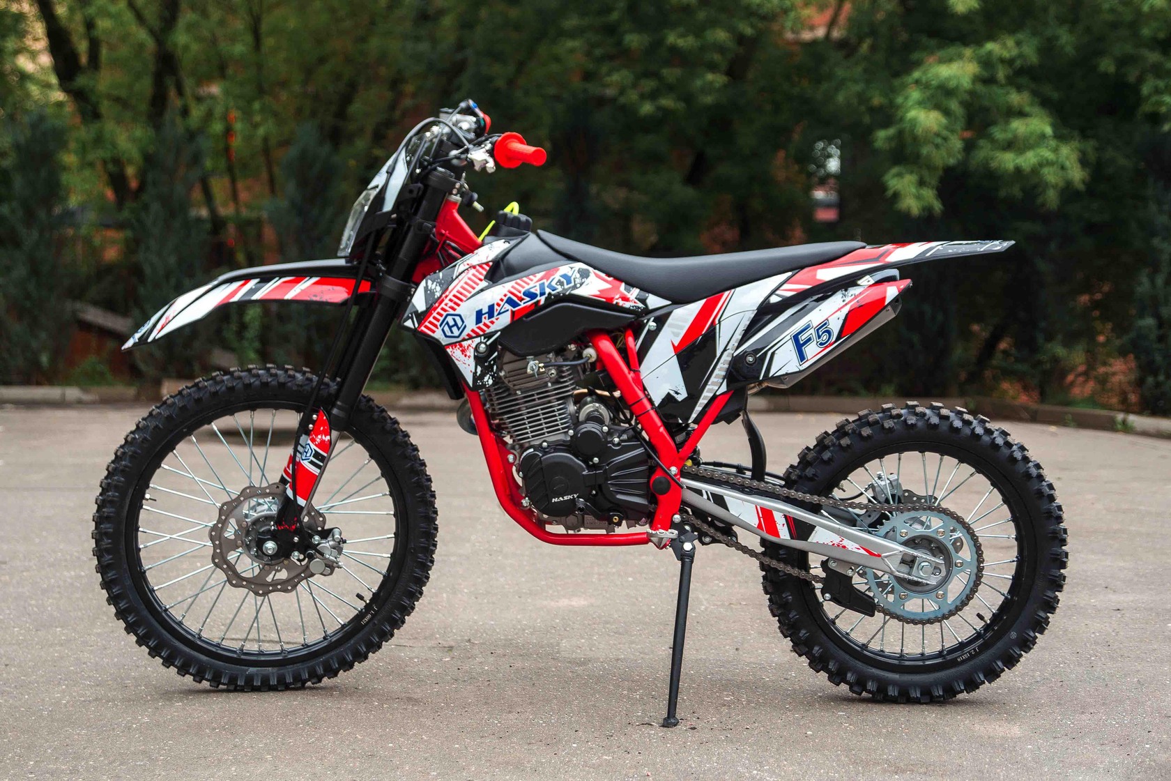 Мотоцикл Hasky F5 - эволюционная ступень от питбайка к полноразмерному мотоциклу. Он специально создан для райдеров, которые уже выросли из питбайка и хотят раздвинуть свои пределы. Он подойдет и начинающим эндуристам с ростом от 170 см. F5 идеально себя чувствует в лесных прохватах с преодолением различных препятствий благодаря небольшому весу, тяговитому двигателю и большим колесам 21/18. Мотоцикл максимально упрощен для большей надежности. Из электрики он снабжен лишь светодиодной фарой и шикарной компактной приборной панелью. Пo сути в нем просто нечему ломаться, можно смело ездить в лесные мото походы на 40 - 60 км. Инженеры Hasky учли все ошибки конкурентов и снабдили мотоцикл качественными подвесками и алюминиевыми ободами . Был переработан узел верхнего крепления двигателя к раме, избавивший от повышенных вибраций. Ведомую звезду закрепили на 6 потайных болтов. Ну и не стали экономить на карбюраторе - в базе установлен NIBBI PE 30! Подведя итог можно смело заявить что F5 - идеальный выбор для тех, кто хочет купить настоящий мотоцикл по цене питбайка!У нас Вы можете купить этот мотоцикл с бесплатной доставкой по РФ и гарантией до года. Также его можно приобрести в рассрочку или в кредит.