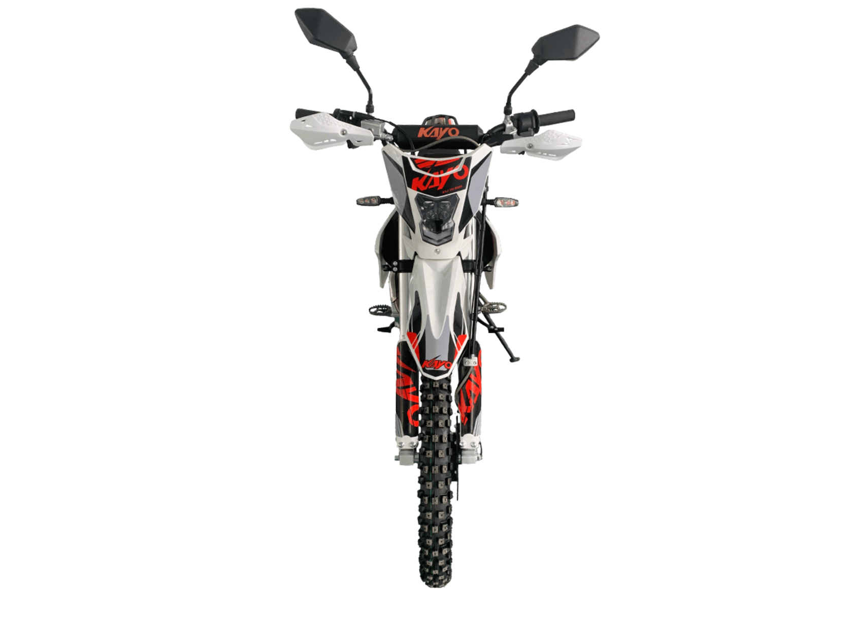 KAYO K1-J 150 ROAD (CB150) 19/16 (2025 г.) ПТС – мотоцикл, который создан для тех, кто готов покорять внедорожные трассы.4-тактный мотор с воздушным охлаждением и одним верхним распределительным валом (SOHC) сочетает надёжность и отличную динамику. Объём двигателя составляет 144,6 см³. Он обеспечивает мощность в 12 л.с. при 8500 об/мин и максимальный крутящий момент 10 Н·м при 6500 об/мин. Степень сжатия 9,2:1, диаметр и ход поршня – 65,5 x 49,5 мм. Всё это работает в паре с карбюратором PE24, который гарантирует стабильную работу двигателя.Система запуска универсальная: электростартер и кикстартер, чтобы вы всегда были готовы к поездке. Тип зажигания CDI.Коробка передач механическая с 5 ступенями. Привод цепной. Топливный бак на 6 литров.Мотоцикл оснащён нерегулируемой передней 735 мм вилкой и задним 360 мм амортизатором. Задний маятник и прогрессия стальные. Траверсы выполнены из литого алюминия.Колёса размером 19 дюймов спереди и 16 дюймов сзади. Алюминиевые обода, ступицы и буксаторы. Для уверенной остановки предусмотрены гидравлические дисковые тормоза спереди и сзади.Габариты 1850×760×1060 мм и сухая масса всего 95 кг. Колёсная база 1250 мм. Дорожный просвет 250 мм, высота по седлу 790 мм.На KAYO K1-J 150 ROAD можно выезжать на дороги общего пользования благодаря наличию ПТС, цифровой приборной панели, звукового сигнала, зеркал заднего вида и необходимого набора светотехники.Имеются стальные подножки для поездок с пассажиром и задняя багажная платформа. Пластиковая защита рычагов.