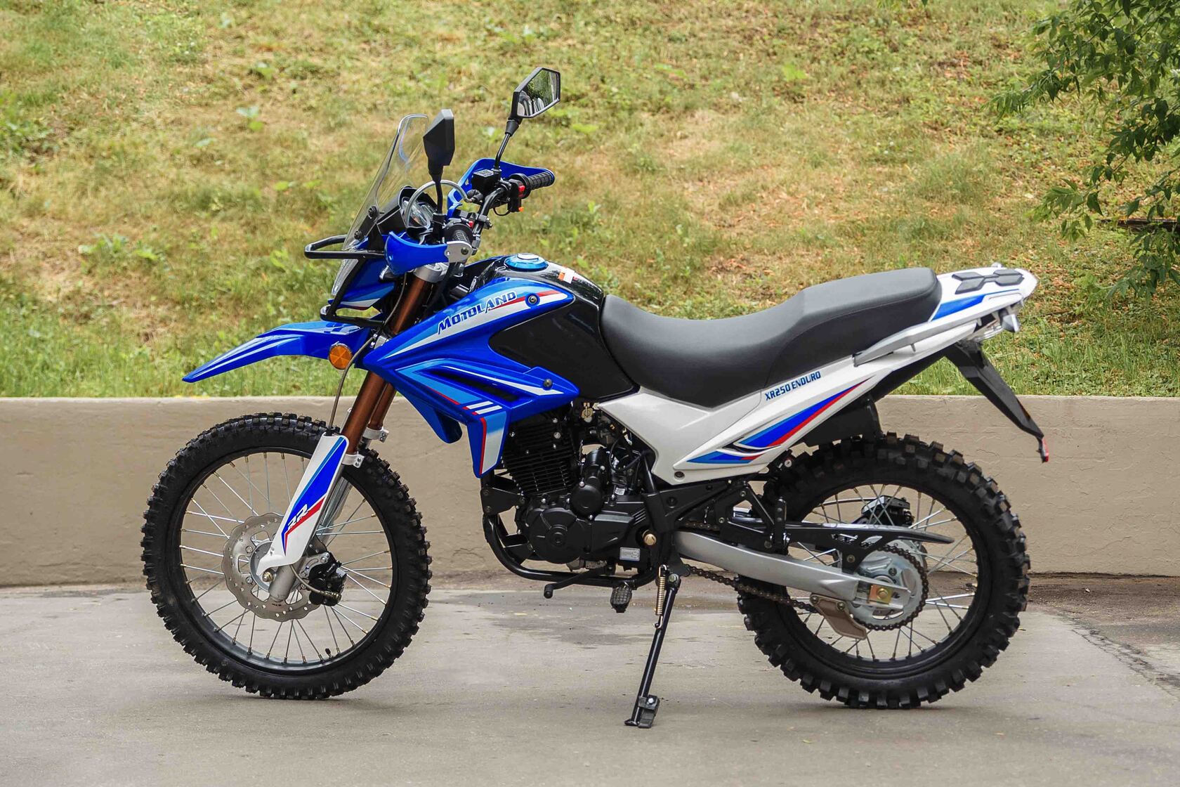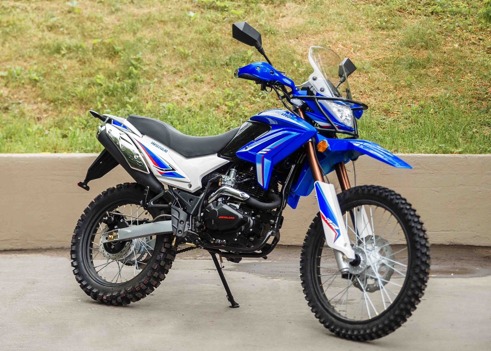 Обновленный мотоцикл Motoland XR250 ENDURO (172FMM-PR) предназначен для езды по бездорожью, эндуро соревнований, подходит для города, шоссейных и сельских дорог.. Motoland XR250 ENDURO (172FMM) отличаются высокой проходимостью, отлично ведут себя на мягком грунте и песке, легко преодолевают препятствия. Спортивный характер XR250 ENDURO (172FMM) подчёркивается современным дизайном. Классическая конструкция акцентирует внимание на сильных сторонах мотоцикла, которому не страшны грязь, брёвна, камни и другие преграды. Мотолэнд XR250 ENDURO (172FMM) весит 130 кг и подходит для пользователей любого роста, хорошо держит баланс и позволяет уверенно сохранять равновесие даже на сложных участках эндуро трасс. Колёса спицованные, сделаны из алюминия. Размер переднего колеса — 21 дюйм (530 мм), заднего — 18 дюймов (450 мм). Передние и задние тормоза дисковые. Покрышки с крупными шипами подходят для бездорожья, лесных дорог, песка и мягкого грунта. При этом купить мотоцикл Эндуро можно не только для соревнований, но и для езды по трассе и городу. Передняя вилка — перевёрнутая телескопического типа, дополнительно защищена жёстким пластиком. Задняя подвеска с моноамортизатором. Руль Эндуро усилен пластиковыми рамками, которые защищают руки гонщика от веток и травм при падениях. Приборная панель оснащена ЖК-экраном, на котором отображается вся информация о состоянии Эндуро: обороты, пробег, скорость и другие необходимые данные. Китайский Эндуро компании MotoLand оснащён одноцилиндровым 4-тактным двигателем 172 FMM с воздушным охлаждением b балансирным валом. Мотор мощностью 21 л. с. и объёмом 250 см³ даёт возможность разгоняться на Эндуро по ровной трассе до 120 км/ч. Расход топлива — 5 литров на 100 км. Коробка передач механическая, 5-скоростная. Для запуска мотора используйте электростартёр или кикстартёр. Установлена электронная система зажигания (CDI). У нас Вы можете купить этот мотоцикл с бесплатной доставкой по РФ. Также его можно приобрести в рассрочку или в кредит.