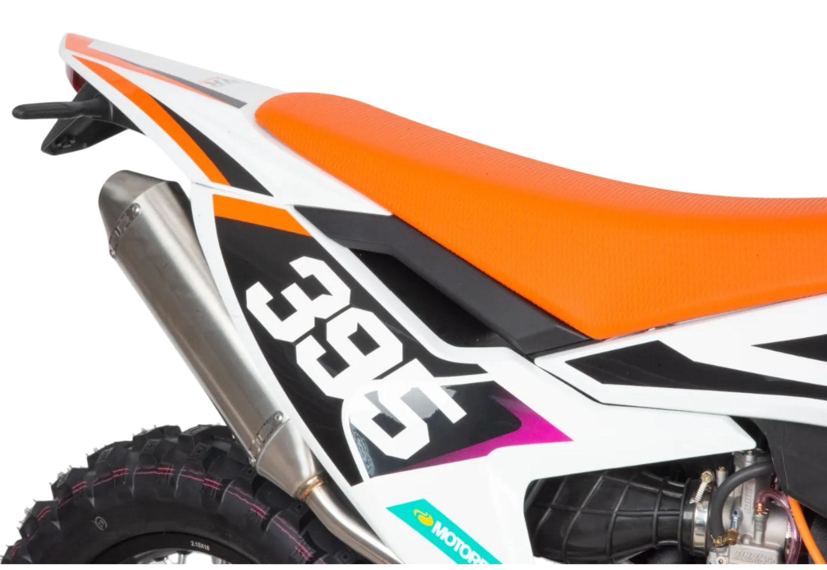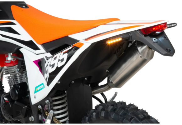Разгоняется до 140 км/ч. Выхлопная система с резонатором, глушитель алюминиевый. Идеален для бездорожья, т.к. его кроссовые шины (120-90-21) и (80-100-21) просто созданы для езды по мягкому и среднему грунту.