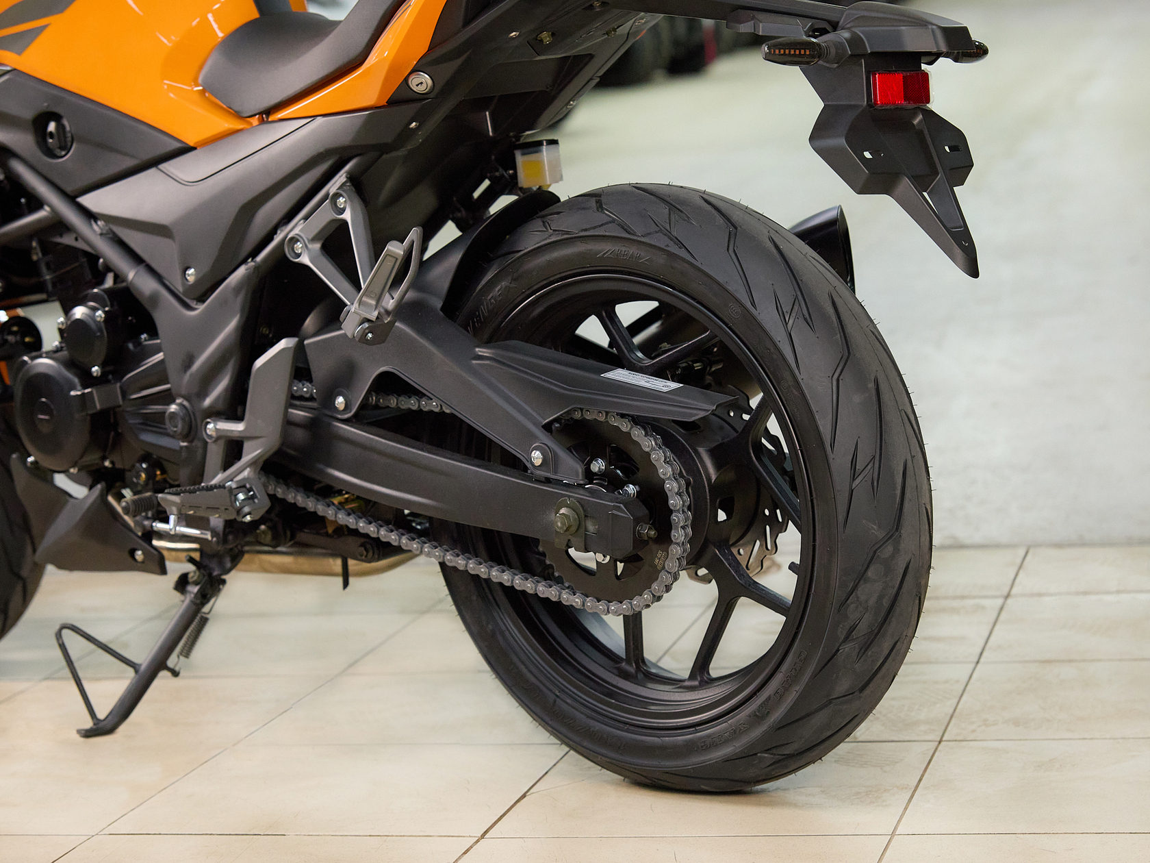 Новинка 2023 года MOTOLAND 250 DF BIG BORE !!!Представляем Вашему вниманию дорожный мотоцикл на шестискоростном двигателе 174 MN (CBS300 с балансиром) , с большим радиатором водяного охлаждения, с электростартером, мощностью 24 л.с. На двигателе установлен карбюратор Keihin PE 34 MV.Также на новинке передние и задние тормоза оснащены 4-х поршневыми суппортами, увеличен R переднего тормозного диска, литые алюминиевые обода , передняя вилка перевёрнутого типа с большим ходом, которая обеспечивает отличную управляемось для комфортного передвижения.Современный дизайн мотоцикла разработан с учетом всех последних новшеств.520Н усиленная сальниковая цепь в сочетании с хорошо подобранными звездами, обеспечивает отличную динамику.Хорошо подобранные покрышки на 17" ободах, 110/70 и140/70, обеспечивают отличное сцепление с дорожным покрытием.Рама скелетная. Удобное двухэтажное кожаное сиденье и обновленная жидкокристаллическая панель приборов с подсветкой - заставят радоваться комфорту и удобству.Передние и задние суппорта 4-х поршневые. Глушитель прямоточный Akrapovic с увеличенным диаметром трубы. Руль двойной усиленный переходного сечения.Передние удлиненные габаритные огни выполнены вертикально и встроены в пластик.Световое оборудование на экономичных и долговечных светодиодах. Топливный бак 12 л. Цвет оранжевый.