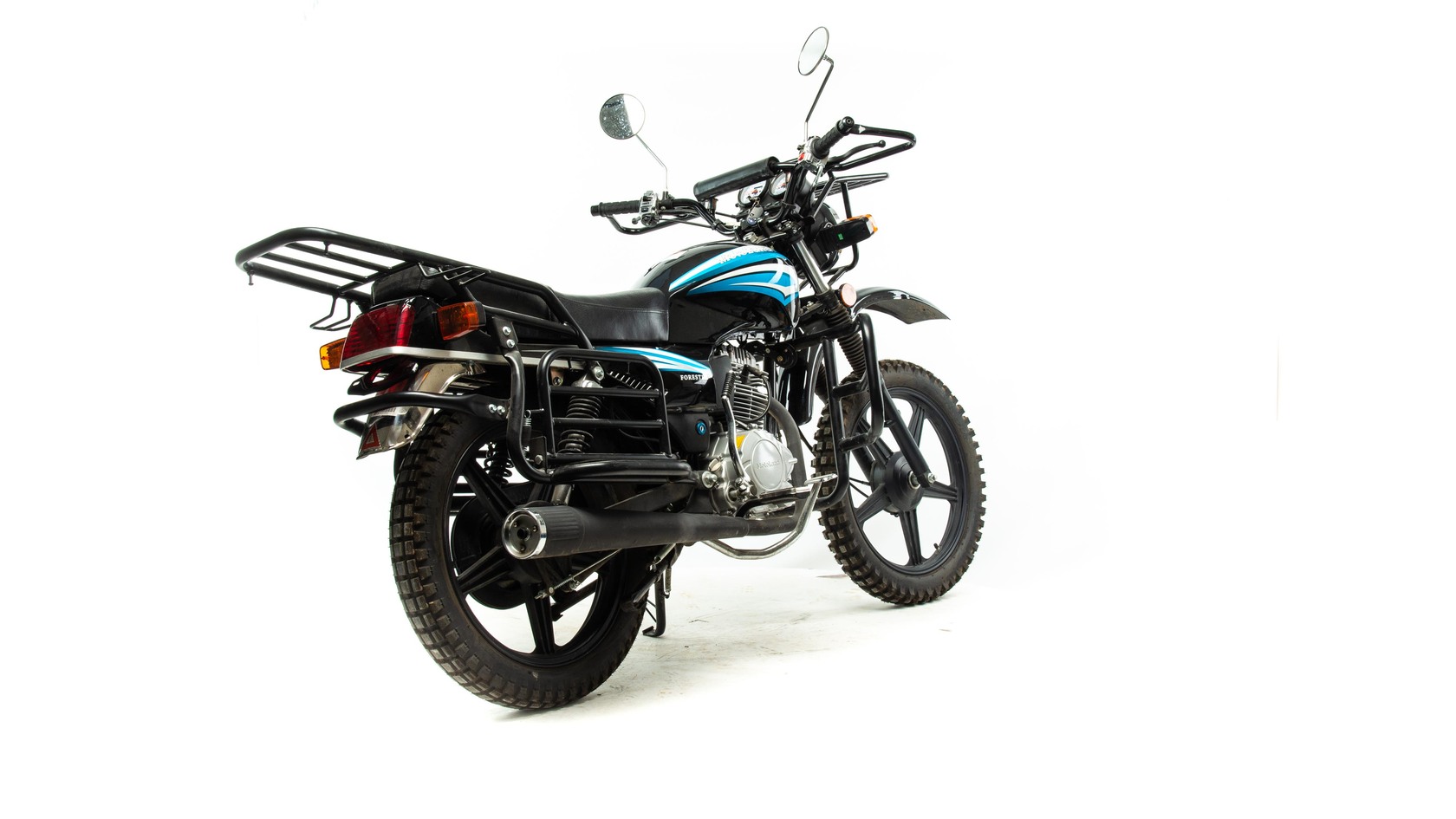 Мотоцикл Motoland FORESTER 200 настоящий работяга с отличным запасом прочности для тяжёлой ежедневной работы.Оснащен 18 дюймовыми колесами с покрышками с крупными шипами позволяющими уверенно ездить по бездорожью. Вместительный топливный бак даёт возможность ездить на большие расстояния, не волнуясь о наличии заправок. Мотоцикл оснащён спидометром с индикатором выбранной передачи и тахометром. Передние и задние тормоза барабанные с простой регулировкой. Задняя подвеска включает 2 надёжных амортизатора. Мотоцикл Форестер 200 оснащён корбюраторным одноцилиндровым двигателем объемом 200 см³. Мотор отличается тихой работой благодаря балансирному валу. На руле размещён багажник с держателем груза. Также большой багажник есть в задней части мотоцикла, а над подножками встроены специальные увеличители площади для перевозки грузов.Вместительность,работоспособность и неприхотливость в обслуживании, — вот лучшие качества этого мотоцикла.