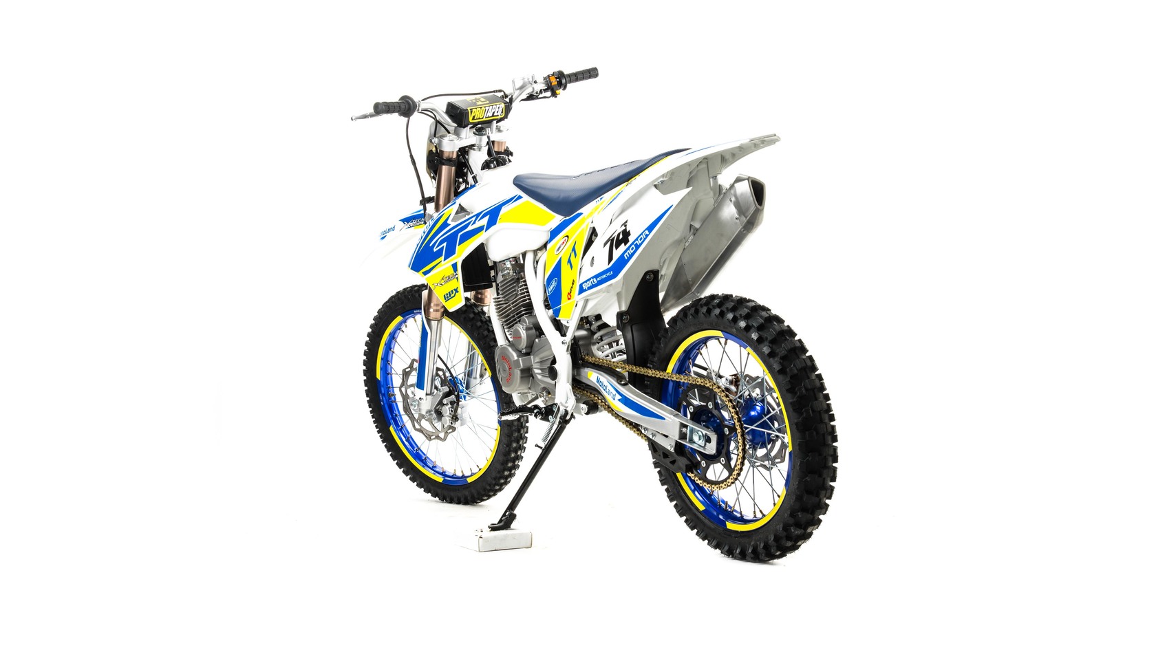 MotoLand TT 250 Новинка весны 2020 года.Надёжная техника из самых популярных компонентов оснащена Двигателем ZONGSHEN 172FMM с кикстартером и электростартером Мощностью 21 Л.С. на двигателе установлен Карбюратор NIBBI PE28.Это полноразмерный кроссовый мотоцикл его база по осям составляет 1430 мм., и габаритами 2180х800х1300 мм. Высота по седлу составляет 950 мм., что по сравнению с Моделью XT 250 ST 21/19 ниже порядка 20 мм. Что позволяет комфортно себя чувствовать райдерам среднего роста.За счет сбалансированной базы мотоцикл имеет отличную управляемость, а конструкция рамы и особенности настройки подвески GPX способствуют максимальному поглощению неровностей дорожного покрытия, а так же усиленная прогрессия на игольчатых подшипниках.Алюминиевые обода c антибуксаторами, усиленными спицами и ступицами CNC. На кроссовой резине Yuanxing 80/100-21 / 100/90-18На мотоцикле установлена обновлённая тормозная система аналог «brembo» с медными колодками , что обеспечивает отличные тормозные характеристики. Особенностью заднего тормоза является, лапка верхнего расположения с эксцентриковой регулировкой.Выпускной патрубок с резонатором Power Bomb имеет крепления на пружинах для снижения вибрации. Глушитель с уникальным дизайном прямоточного типа, полностью алюминиевый для облегчения веса.