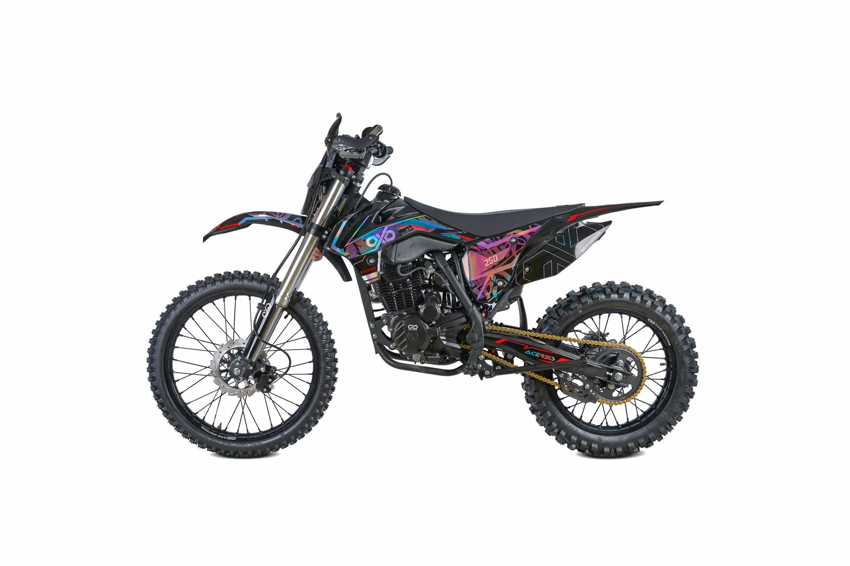 ДвигательМодель оснащена двигателем Zongshen 172FMM-3A с пятиступенчатой КПП. Особенностью двигателя, можно считать то, что данный двигатель является самым надежным среди серии моторов Zongshen.РамаРама мотоцикла OXO производится из труб шестигранного сечения хром-молибденовой стали, которая является очень прочной и легкой. Геометрия рамы, благодаря правильно выверенному центру тяжести и углу наклона вилки - способствует наилучшей управляемости устойчивости мотоцикла на низкой скорости.ПодвескаПередняя вилка перевернутого типа. Мотоцикл снабжен моноамортизатором, который соединен посредством системы рычагов прогрессии. Система прогрессии, обеспечивает равномерную, мягкую работу и увеличивает длину рабочего хода подвески.КолесаВ переднем и заднем колесах установлены антибуксаторы, которые притягивают покрышку к ободу, позволяя ездить по бездорожью при низком давлении в камерах, не давая покрышке проворачиваться во время езды. Размер передней покрышки: 80/100-21. Размер задней покрышки: 120/100-18. Они прекрасно себя ведут по песку и грязи, что позволяет райдеру отлично показать себя на пересеченной местности.Тормозная системаТормозная система мотоцикла - полностью гидравлическая с армированными шлангами. Спереди и сзади установлен двухпоршневой суппорт. Данная конфигурация тормозных механизмов, позволит быстро и безопасно остановиться с максимальной скорости даже на бездорожье.РульВажная часть современного эндуро мотоцикла - усиленный руль переменного сечения. На руле установлен рычаг заслонки подсоса. Алюминиевая ручка газа с коротким ходом имеет регулировку троса..