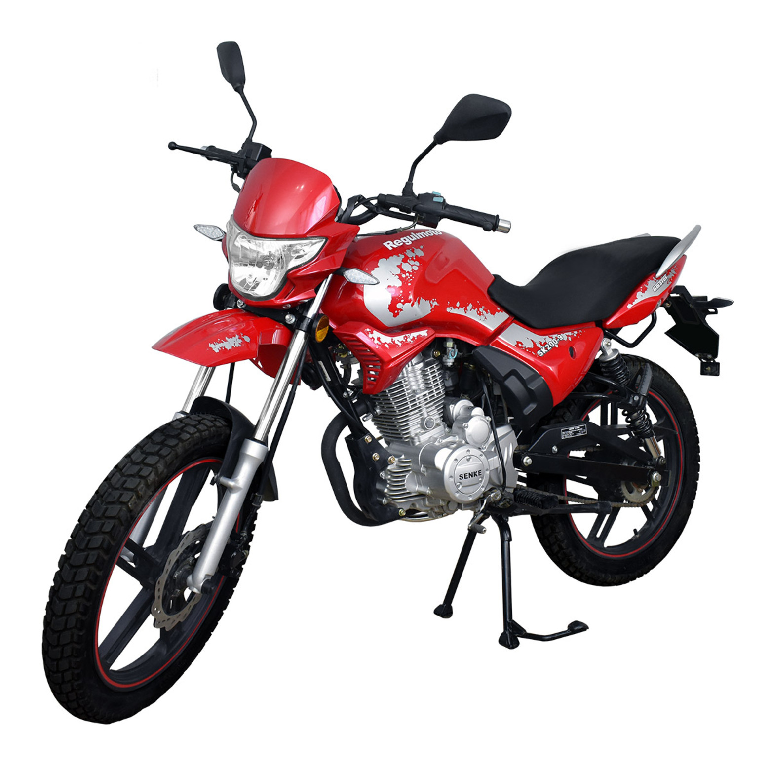 Компания «Regulmoto» представляет вниманию поклонников двухколесной мототехники мотоцикл Regulmoto SK200-9 – надежный и доступный для многих байк с широкими эксплуатационными возможностями. Мотоцикл Regulmoto SK200-9 – один из ярких представителей линейки малокубатурной мототехники известного азиатского производителя Senke. Мотоциклы производства одного из крупнейших китайских концернов пользуются заслуженным признанием экспертов и мотолюбителей в различных частях света, включая Европу и Америку. Продукцию Senke отличают не только одно из лучших на рынке соотношений достойного качества и демократичной цены, но и солидный эксплуатационный ресурс, высокая надежность, простое и недорогое сервисное обслуживание. В раме мотоцикла с 18-дюймовыми колесами на литых дисках установлен 4-тактный 200-«кубовый» двигатель с воздушным охлаждением, который способен развивать максимальную мощность в 13,6 лошадиных сил. Наличие у двигателя балансирного вала способствует снижению вибрации при работе мотора. 5-ступенчатая трансмиссия, электростартер, полноценная подвеска, представленная телескопической вилкой спереди и двумя амортизаторами и маятником сзади, цифровая приборная панель и емкий топливный бак – все это позволит получать максимум удовольствия от поездки. За безопасность использования мотоцикла Regulmoto SK200-9 отвечают надежная тормозная система (дисковый тормоз спереди и барабанный сзади), комплект светового оборудования и зеркал заднего вида. Regulmoto SK200-9 отличают современный внешний вид и обширные возможности практического использования: комплектация байка dual-sport резиной и увеличенный дорожный просвет позволяет эксплуатировать его как на асфальтированных дорогах, так и на проселках и тропах, включая легкое бездорожье.