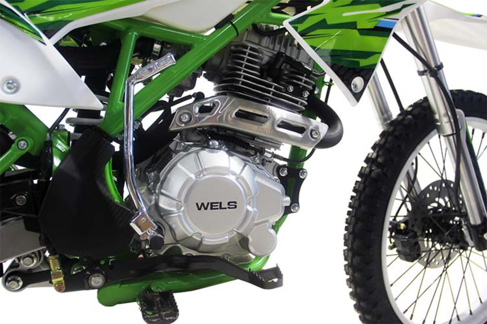 Представляем Вам новую модель мотоцикла от компании WELS - Мотоцикл WELS MX-250 R 2019-го года выпуска. У нас Вы можете купить этот мотоцикл с бесплатной доставкой по РФ и гарантией до года. Также его можно приобрести в рассрочку или в кредит. Мотоцикл WELS MX-250 R является надежным и комфортным в эксплуатации. В раме на колесах 21/18 с стальными ободьями и буксаторами установлен проверенный 4-тактный двигатель с воздушным охлаждением Zongshen 165FMM. Подготовкой топливной смеси для двигателя занимается карбюратор KEIHIN; технический потенциал силовой установки мотоцикла позволяет продемонстрировать 17 «лошадей» максимальной мощности. Подвеска аппарата представлена традиционными вилкой-перевертышем спереди, а также маятником, линком прогрессии и моноамортизатором .Высокая надежность, удобство управления в сложных условиях бездорожья, а также простота сервисного обслуживания обеспечена подбором качественных комплектующих и компонентов мотоцикла.
