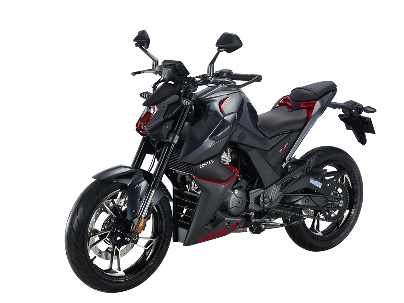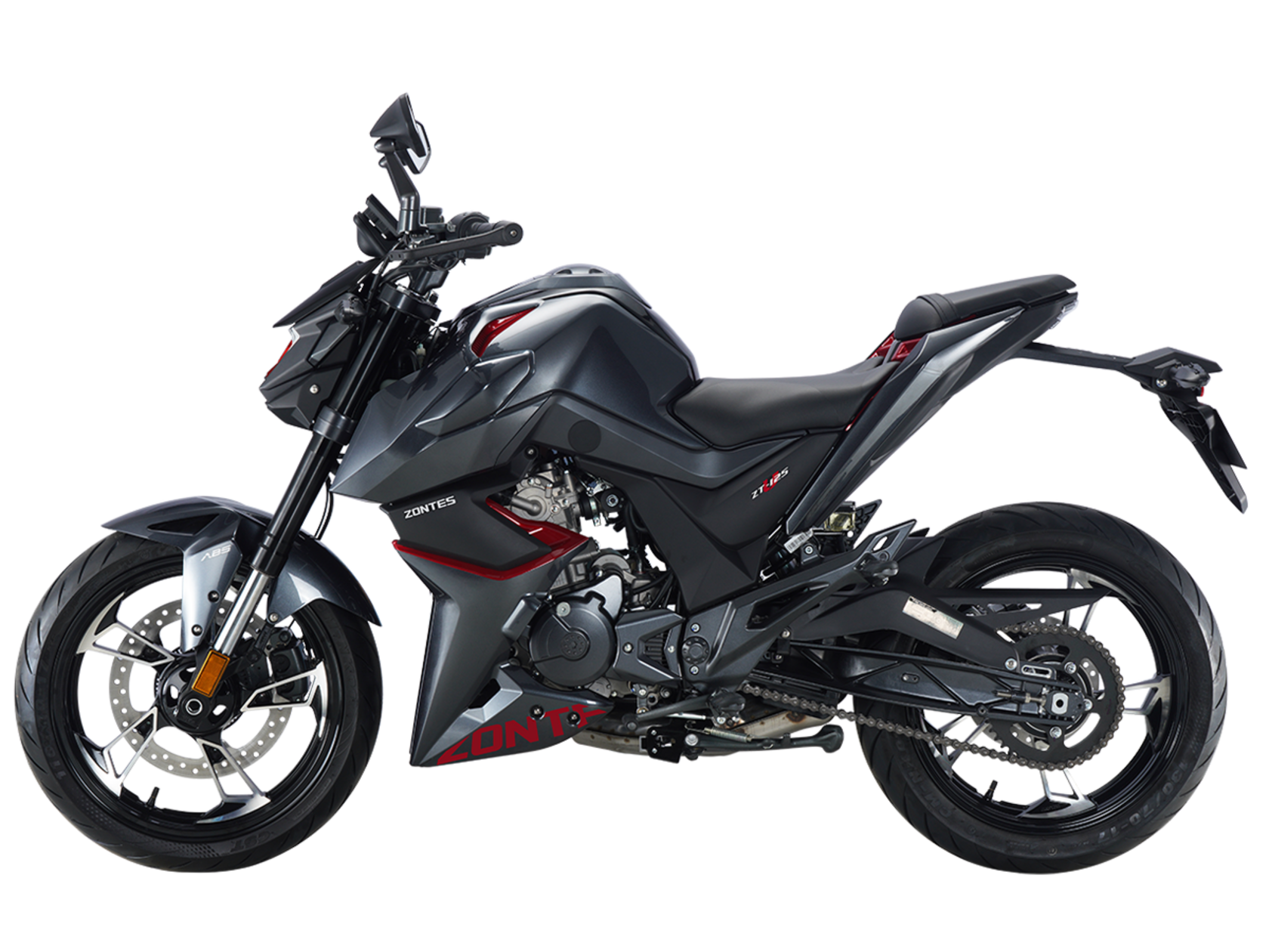 Мотоцикл ZONTES ZT125-U – лёгкий нейкед со стремительным и современным дизайном. Хорошо подходит как для поездок в городской среде и маневрирования в межрядье.Силовая установка представлена одноцилиндровым 4-тактным двигателем ZT152MI с 4 клапанами и 2 верхними распредвалами. Двигатель имеет объём 125 см³ и обеспечивает мощность в 15 л.с. Оснащён инжектором BOSCH и системой жидкостного охлаждения. Механическая коробка передач имеет 6 ступеней и схему 1-N-2-3-4-5-6.Объём топливного бака 12 литров.Колёса выполнены из литого алюминия и имеют диаметр 17 дюймов. Для подвески спереди используется классическая телескопическая вилка, сзади – моноамортизатор. Для торможения установлена дисковая гидравлическая система.В конструкции мотоцикла используется пространственная трубчатая рама из стали. Минималистичная выпускная система также выполнена из нержавеющей стали. Для освещения используется яркая LED-оптика, а приборная панель представлена цифровым дисплеем. Рычаги тормоза и сцепления оснащены защитными скобами.Габариты мотоцикла 2000х845х1105 мм. Колёсная база 1355 мм. Высота по седлу 790 мм. Вес 140 кг..