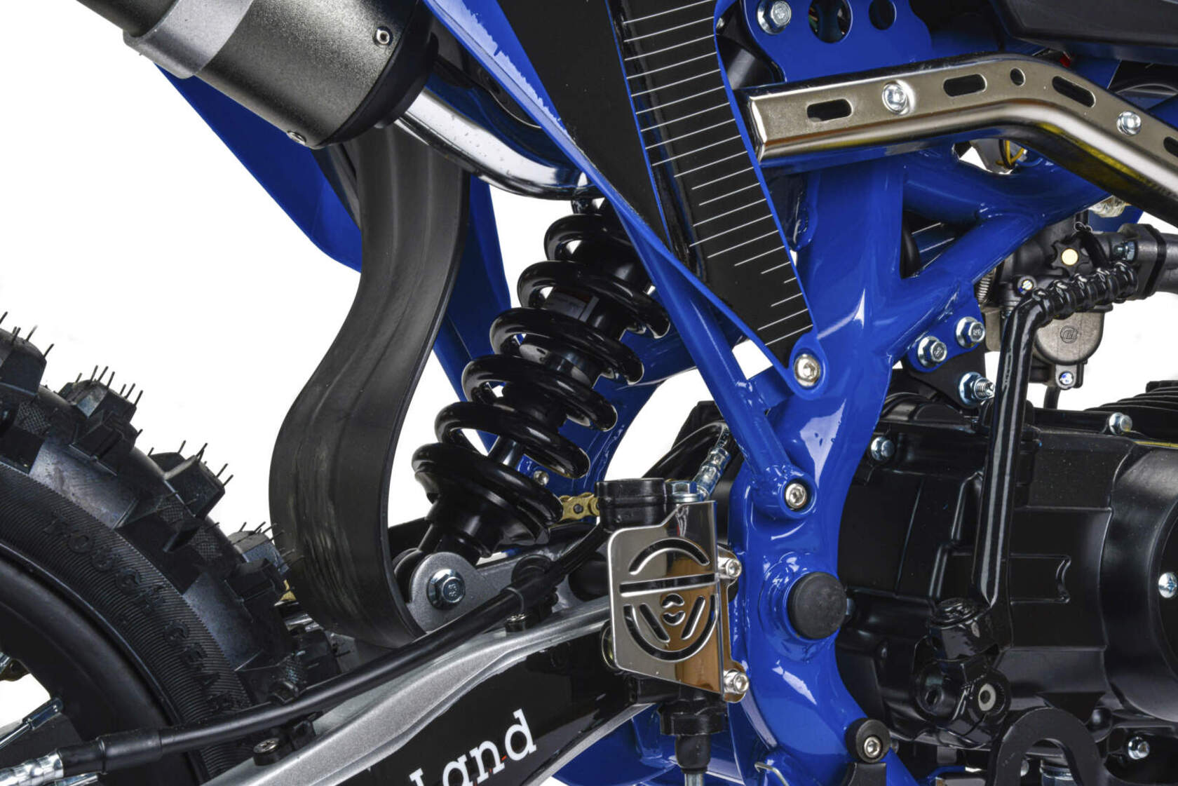 Хорошо чувствует себя на мягком и среднем грунте, разгоняется до 90 км/ч.Питбайк прост в управлении и не требует специального ухода, подойдёт как новичкам, так и любителям мотокросса.Комбинированный прочный пластик не ломается при сгибании.Передняя подвеска — телескопическая вилка перевёрнутого типа, которая отлично подходит для преодоления ям, и других неровностей. Задняя подвеска маятниковая с моноамортизатором.Питбайк оснащён: