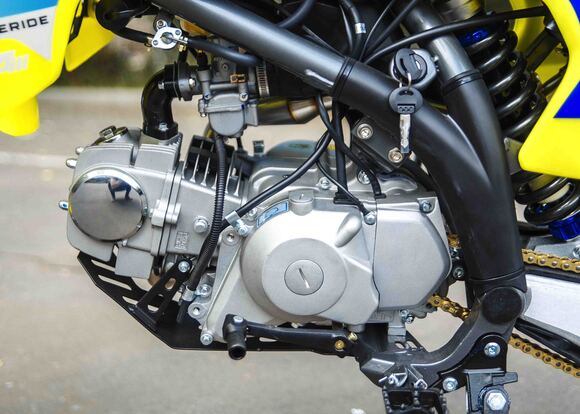 Представляем Вам обновленный RXF Freeride 125 LE 17/14. Модель обзавелась фарой, электростартером и также получила обновленный дизайн графики.RXF Freeride 140 L – по праву считается отличным выбором из линейки Freeride. Мотор YX 125 с электростартером достаточно мощный и тяговитый, чтобы не дать скучать опытным райдерам, но в тоже время достаточно покладистый и безопасный для новичков. На обновленном Freeride теперь есть фара головного света, которая идет в комплекте с питбайком.