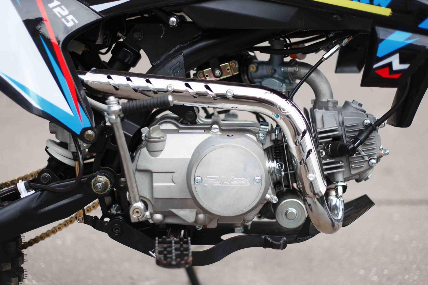 Представляем Вашему вниманию питбайк от молодого российского бренда Full Crew. Модель получила название FC125e 17/14. В ней собраны все ключевые моменты для покорения сердца питбайкера. Крепкая стальная рама, дисковые гидравлические тормоза, надежный и проверенный временем двигатель YX 125 с механической четырехступенчатой коробкой передач и фара. А самый огромный плюс – это демократичная цена и наличие электростартера на питбайке Full Crew FC125 17/14.