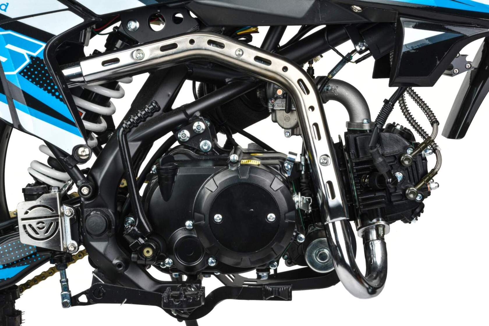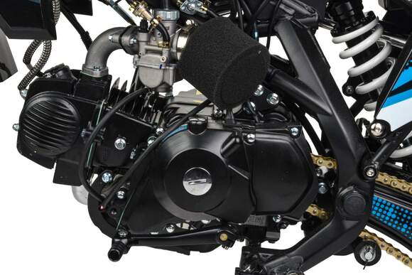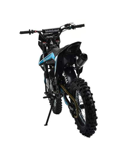Встречайте долгожданную новинку на 150 куб. Питбайк Motoland GF 150 E идеален для поездок по грунтовым дорогам и бездорожью. Хорошо чувствует себя на мягком и среднем грунте, разгоняется до 90 км/ч. Оснащён спортивными траверсами и амортизаторами с регулировкой. весит всего 75 кг.Питбайк прост в управлении и не требует специального ухода, подойдёт как новичкам, так и любителям мотокросса.У питбайка отличный узнаваемый дизайн. Конструкция подчёркивает неуступчивый спортивный характер, который не остановится ни перед одним препятствием.Комбинированный прочный пластик не ломается при сгибании.Передняя подвеска — телескопическая вилка перевёрнутого типа с регулировками, которая отлично подходит для преодоления ям, и других неровностей плохих дорог или их отсутствия. Задняя подвеска маятниковая с моноамортизатором тоже с регулировкой.Питбайк оснащён карбюратором PZ 22 и одноцилиндровым четырёхтактным двигателем с воздушно-масляным охлаждением. Надёжный мотор 1P57YMJ с электростартером, мощностью 11 л. с. и объемом 150 см³ , установленный на усиленной стальной раме, коробка передач механическая, четырёхступенчатая.Отличная тормозная система: передний тормозной суппорт двухпоршневой, задний — однопоршневой. Ступицы алюминиевые, обода, маятник и звезды стальные, цепь 428H, усиленная, руль оснащен "подушкой" и установлен счетчик моточасов. Сиденье выполнено с противоскользящим покрытием. На главном тормозном цилиндре и выхлопной системе установлена защита из нержавеющей стали. Покрышки 17" 70/100 и 14" 90/100. В фаре установлена линзованная светодиодная лампа.Питбайк относится к недорогим моделям, которые при должной эксплуатации работают без сбоев. Не занимает много места в гараже. При необходимости в нём легко сменить любую повреждённую деталь.